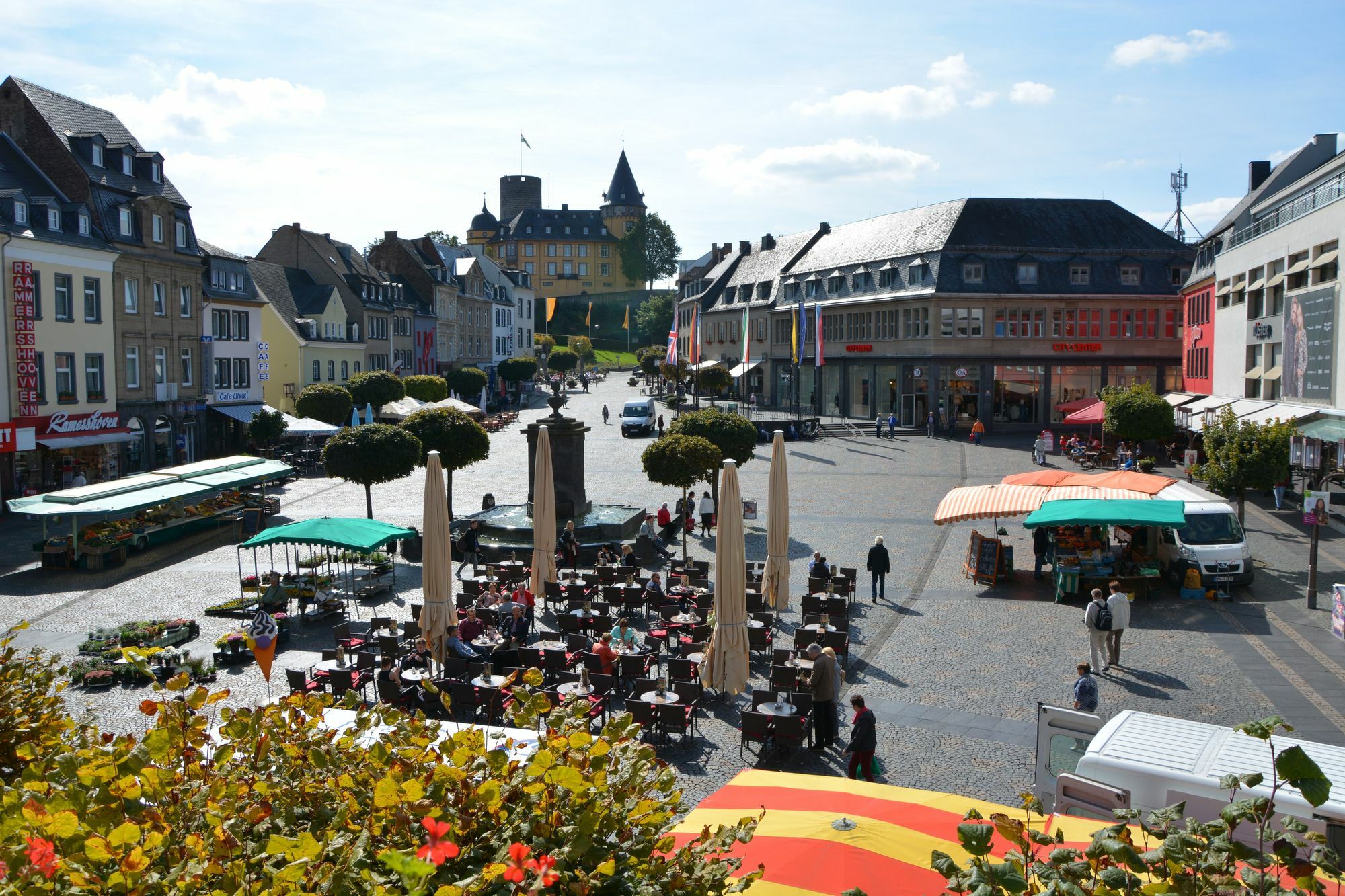 »Spieglein, Spieglein an der Wand, wer ist der Schönste im ganzen Land« - oder besser in der Eifelregion? Das wollte der WochenSpiegel wissen und rief seine Leserinnen und Leser auf, für ihren bevorzugten Marktplatz abzustimmen. Der WochenSpiegel hat einen digitalen Marktplatz geschaffen. Hier präsentieren sich lokale Händler. Kunden finden sie leicht, können bei ihnen einkaufen - egal, ob vor Ort oder auch online. Aber den herkömmlichen Marktplätzen wird eine ebenso große Bedeutung zugeschrieben, denn sie sind, oft seit Jahrhunderten, Treffpunkt, Kommunikationsstätte und Handelsplatz für die Menschen. Denn die digitale Welt nutzen und trotzdem das Geld in der eigenen Stadt lassen, sind keine Gegensätze. Jetzt liegt das Ergebnis vor und mit Abstand konnte der Mayener Marktplatz die meisten Stimmen auf sich verbuchen. Ein Ergebnis, dass die Mayener (natürlich) nicht überrascht. Kaum wurde die Auswertung bekannt, konnte sich Oberbürgermeister Wolfgang Treis nicht zurückhalten und verkündete den Gästen auf der »Business Lounge« in der Oberst-Hauschild-Kaserne, die wirklich schöne Neuigkeit. »Wenn ehrlich abgestimmt wurde, dann musste das so kommen. Der Marktplatz am Fuße der Genovevaburg und umrahmt vom Alten Rathaus - das ist einmalig«, betonte der Stadtchef mit stolz geschwellter Brust. »Meine Freude darüber ist riesengroß!« Mit dieser Meinung steht er nicht allein da. Sein Wirtschaftsförderer Heiner Thelen meinte, dass die WochenSpiegel-Leser absolut richtig entschieden hätten. »Das Leben spielt sich in Mayen zum großen Teil auf dem Marktplatz ab. Dies wird noch durch die ansprechende Außengastronomie verstärkt«, ist Thelen überzeugt. Er wies darauf hin, dass der Marktplatz auch die passende Kulisse für die diversen Festivitäten im Jahreslauf sei und erwähnte das Stein- und Burgfest am Zweiten Wochenende im September, den bevorstehenden Lukasmarkt im Oktober, aber auch die Verkaufs-impuls setzenden Aktivitäten der »MY-Gemeinschaft, wie den »Start in den Frühling« , die Autoschau (mit den »Profis«) oder den Weihnachtsmarkt. In unmittelbare Nähe, fußläufig zu erreichen seien die musealen Einrichtungen auf der Genovevaburg, die gerade von Touristen genutzt werden. Für die touristische Vermarktung in der Stadt Mayen zeichnet Claudia Schick im Alten Rathaus verantwortlich. Mit ihrem Team macht sie die Gäste darauf aufmerksam, welches die Anziehungspunkte in Mayen sind. Der Marktplatz - direkt vor der Tür - gehört einfach dazu. »Wir freuen uns, dass wir jeden Tag den schönen Platz genießen dürfen.« »Bereits zum zweiten Mal werden wir für unseren schönen Marktplatz ausgezeichnet«, freut sich Claudia Schick über die neuerliche Auszeichnung. 2011 wurde Mayen von »Radio RPR« als »beliebtester Marktplatz in Rheinland-Pfalz« geehrt. Für Schick macht den Reiz aus, dass der Markplatz sowohl gerne genutzter Treffpunkt für Einheimische, aber gleichzeitig auch für Fremde ist. Gegen die folgenden Marktplätze konnte sich Mayen mit großem Abstand durchsetzen: Gerolstein, Mechernich, Sinzig, Remagen, Schleiden, Olef, Blankenheim, Bitburg, Ripsdorf, Wittlich, Euskirchen, Bad Münstereifel, Monschau, Daun, Marmagen, Neuerburg, Dahlem, Roetgen, Ahrweiler, Zülpich, Kommern, Gemünd und Adenau. Fotos: Kruft