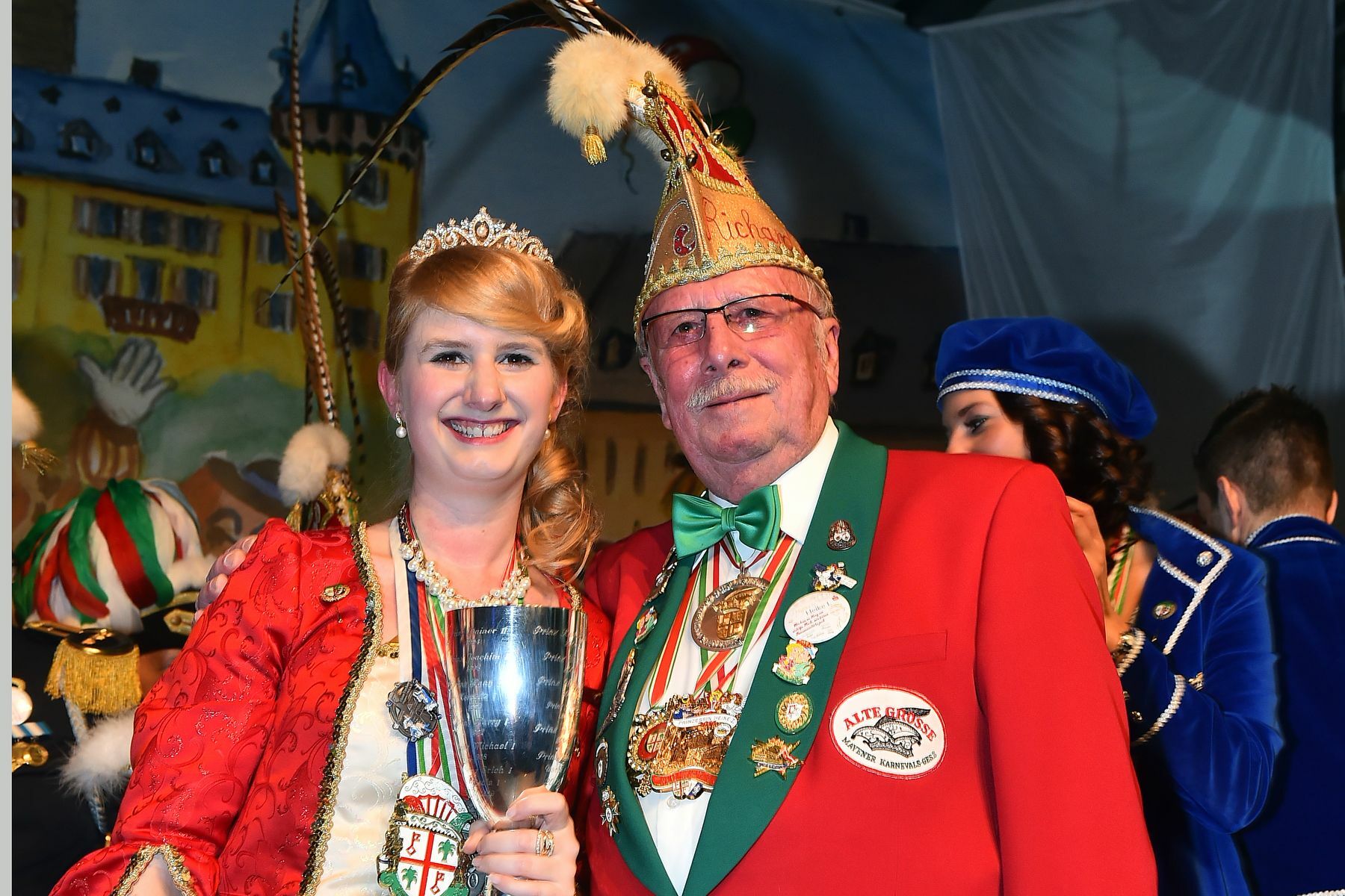 »Endlich sind wir da. Wir haben so lange auf diesen Moment gewartet und sind froh, dass es losgeht«, rief Heike Weber in die Menge. »Wir« das sind die Pagen Kathrin und Jenny sowie Hofnarr Thorsten und Mundschenk Stefan, die sie auf allen Wegen begleiten werden. Als Prinzessin Heike I. setzt sie in dieser Session eine gute, kontinuierliche Familientradition fort. Vor 20 Jahren regierte ihr Vater als »Prinz Hans III.« die Mayener Narren und vor zehn Jahren schwang Bruder Sven als Regent das (närrische) Zepter. Für die Hausener Husarin Heike geht nun ein Traum in Erfüllung, als sie die letzte Insignie ihrer Macht, die Krone, von »Alte Große«-Präsident Christoph Schwab erhielt. Sichtlich gerührt, das ein oder andere Tränchen wegwischend, geht nun als 78. Tollität, aber erste »Solo-Prinzessin, in die Annalen der Stadt ein. »Ich bin die erste Prinzessin, denn ich habe meinen richtigen Frosch noch nicht gefunden«, stellte die sympathische Regentin fest. Aber der sollte schon bald kommen...zumindest im Vortrag. Per Segway (zur Verfügung gestellt von der Firma »Volz«) befuhr Oberbürgermeister Wolfgang Treis die karnevalistisch geschmückte Festhalle. »On doch hann ech ürscht jedaacht dau spinns, be et heeß in Maye jet et düs kir ja kaane Prinz. Et es de letzte Bastion de nau fällt; ewäile können Fraue alles janz ahlan off der Welt...Doch selbst de Prinz, der seit Jahrhunderte Maye reageert, hat ma nau met demm Säje der Alte Gruße ausrangeert«, kommentierte der Stadtchef in seiner Krönungsrede die Alleinregentschaft und weiter: » Domit wär de alleletzt Hürd zur Gleichberechtijung jeschafft.« Dann sorgte OB Treis mit Frack und Zylinder für eine riesige Überraschung: »Wäil de Fraue ümma mieh Strukdure ausradeere, well ech für Heike I. Deutschland erfolgsreichste Sängerin (Helene Fischer) zideere: »Prinzenlos durch die Nacht, dat es de neue Faasenaacht. Prinzenlos in einer Stadt, die so tolle Männer hat. Prinzenlos männerfrei, nur Daheims Dieter ist dabei, der zählt fast (schon) 100 Jahr. Da kommt keine in Gefahr«, damit hatte Treis die Lacher auf seiner Seite. Und präsentierte die Lösung für die prinzenlose Zeit: »Has bes ewäile kaane funne, un de Zäit würd eng, doch ech han de Lösung su aus da Lameng. Denn wenn dau wells, dann ab heut of jeda Bühne säin ech däine Prinz, Prinz Wolfgang der Grüne.« Damit überzeugte der OB mit ganz neuen gesanglichen »Qualitäten«. Um als ansehlicher Prinz darzustehen, schlüpfte er aus seinem Frack und glänzte im feinen Prinzenornat. Geschenke hatte er ebenfalls im Gepäck. Unter anderem überreichte er Mundschenk und Hundefan Stefan einen Gutschein zum Besuch von Holger Schüler‘s Programm »1 - 2 - 3« am Mittwoch, 20. Januar, 20 Uhr, im Autohaus Scherer (www.vg-mayen.de). www.alte-grosse.de Fotos: Seydel/Kruft