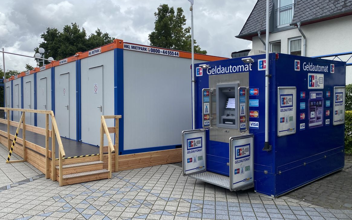 Aufgrund von notwendigen Renovierungsarbeiten bleibe die Filiale zwar weiterhin geschlossen, aber auf dem angrenzenden Parkplatz gehe der Geschäftsbetrieb jedoch in Containerbüros weiter. "Wir freuen uns sehr, dass wir ab sofort wieder mit allen gewohnten Beratungs- und Serviceleistungen für die Kunden da sein können", betont Werner Dieler, Leiter der Geschäftsstelle Polch. "Beratungstermine bitten wir vorab telefonisch auszumachen." Für die Beratung stehen zwei Büros zur Verfügung, in einem weiteren Container ist der Servicebereich sowie ein Kontoauszugsdrucker untergebracht. Direkt neben den Containern steht der neue Geldautomat, der rund um die Uhr zugänglich ist. Die Öffnungszeiten wurden aufgrund der Renovierungsarbeiten angepasst. Die Filiale öffnet montags bis freitags von 9 bis 12 Uhr. Montags, dienstags, mittwochs und freitags ist sie nachmittags von 14 bis 16 Uhr geöffnet, donnerstags von 14 bis 18 Uhr. Foto: Volksbank RheinAhrEifel www.voba-rheinahreifel.de