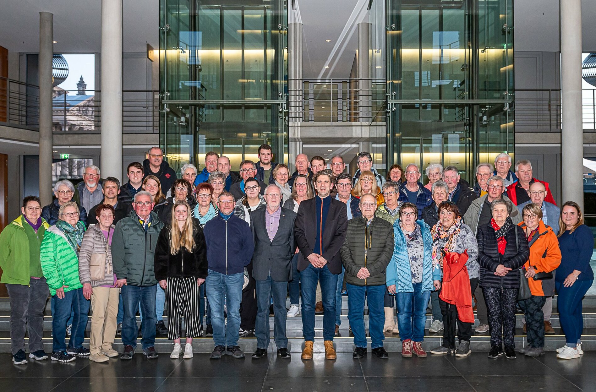 In Berlin erlebten die rund 50 engagierten Rhein-Hunsrücker Bürgerinnen und Bürger ein abwechslungsreiches Programm. Traditionell stand der Besuch des Reichstages mit einem Informationsvortrag und die Besichtigung der Kuppel im Mittelpunkt. Bei einem Gespräch berichtete der Bundestagsabgeordnete Marlon Bröhr über die parlamentarischen Abläufe. Der CDU-Abgeordnete ermöglichte der Besuchergruppe zudem einen kleinen Blick hinter die Kulissen des Deutschen Bundestages.