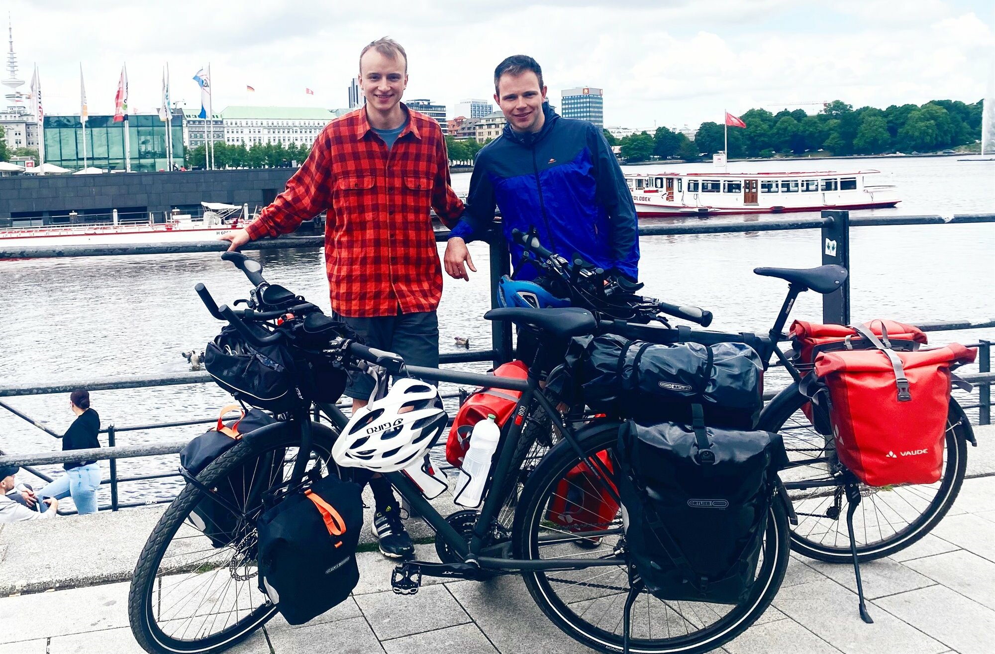 Sie kennen sich seit dem Kindergarten und haben 2016 zusammen ihr Abitur am Herzog-Johann-Gymnasium in Simmern absolviert. Seither haben die beiden Hunsrücker Jens Münchow (26) und Leon Follert (25) immer wieder verschiedene Reisen zusammen unternommen. Zum Beispiel einen Roadtrip durch Norwegen und eine Alpenüberquerung zu Fuß. Auch mit dem Rad sind die Freunde immer wieder unterwegs. »Eine so große Radtour hatten wir uns aber bisher noch nicht vorgenommen«, sagen die beiden. Anfang Juni starteten sie ihre Reise durch Europa in Hamburg. Als Endstation ihrer Tour war von Beginn an ihr Heimatort Riesweiler eingeplant. »Wir haben hier Familie und Freunde, die wir gerne wiedersehen wollen nach einer so langen Tour«, sagen die beiden.