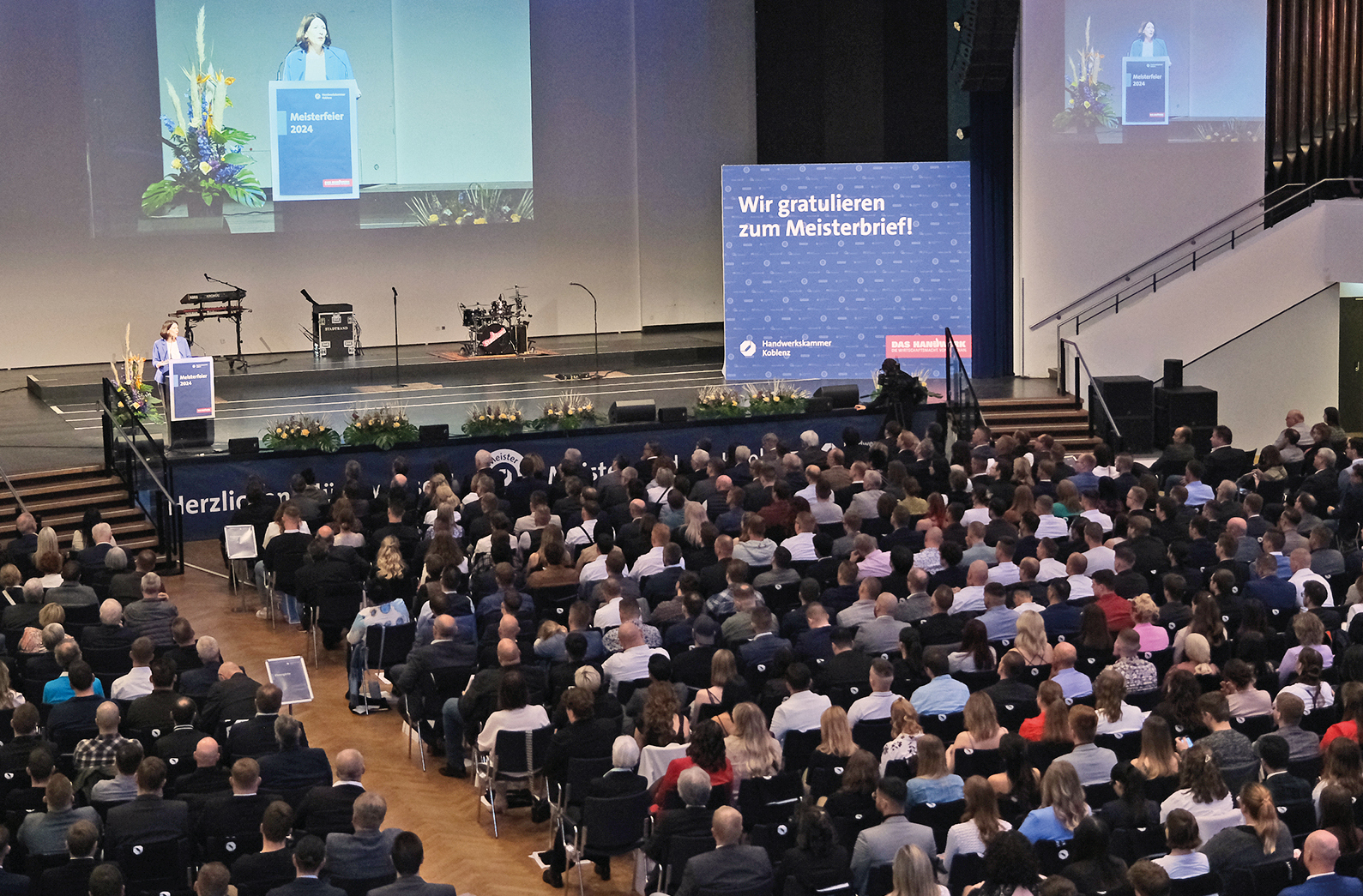 713 Meisterbriefe für Handwerker aus 25 Berufen, 23 Prozent davon weiblich, Absolventen mit elf Staatsangehörigkeiten - "das spricht für Vielfalt und die exzellenten Möglichkeiten, die sich mit dem Handwerk und natürlich mit dem Meisterbrief verbinden", begrüßte Kurt Krautscheid, Präsident der Handwerkskammer (HwK) Koblenz, die 1.500 Gäste zur großen Meisterfeier in der Rhein-Mosel-Halle.