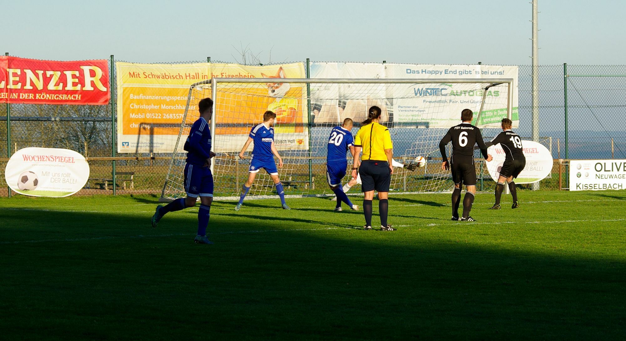 von Arno Boes Mit der selben Elf, die auch im letzten Heimspiel gegen Ludwigshafen auf dem Platz stand, startete Trainer Torsten Schmidt in die Begegnung im schmucken Stadion in Pirmasens. Damit stand auch wieder Thomas Klasen in der zentralen Abwehr. Sein Einsatz war bis zum Aufwärmen noch fraglich, dann ging es aber doch und er vertrat erneut mit seiner Routine und Übersicht den verletzten Julian Hohns. In den ersten 20 Minuten waren die Spielanteile verteilt, zwingende Torchancen ergaben sich aber noch nicht. Dann fanden die Hunsrücker immer mehr in ihren Rhythmus, in der 28. Minute hatte Enrico Köppen nach Vorlage von Maxi Junk die erste große Chance, der Ball versprang aber auf dem „Rumpelacker“, wie Schmidt das schwer ramponierte Pirmasenser Spielfeld später in der Pressekonferenz nannte. Gegentor durch Konter Fünf Minuten später ging ein Kopfball von Selim Denguezli knapp am FK-Tor vorbei, Karbach blieb am Drücker. Doch mitten in dieses Druckphase hinein gelang den Gastgebern mit einem langen Ball in der 40. Minute ein Konter, Dennis Krob erzielte freistehend das 1:0 für Pirmasens. Fast wäre zwei Minuten später den Karbachern schon der Ausgleich gelungen, doch der Ball von Maxi Junk prallte vom Innenpfosten zurück in Spielfeld. Auch zu Beginn der zweiten Hälfte sahen die gut 100 Zuschauer, davon fast die Hälfte aus Karbach, weitere Angriffe der Blau-Weißen. Ein abgefangener Freistoß des FK kam in der 49. Minute zu Enrico Köppen, der ging links durch und bediente den in der Mitte stehenden Junk. Ähnlich wie zuvor beim 1:0 kann auch Maxi den Ball fast freistehend zum Ausgleich ins Tor knallen. Bilderbuchtor bringt die Wende Auch nach dem Ausgleich drängten die Karbacher weiter nach vorne, Pirmasens gelingen aber immer wieder gefährliche Szenen vor dem Tor von Florian Bauer. Der ist in der 68. Minute machtlos, als erneut Dennis Krob zu einem bilderbuchmäßigen Fallrückzieher ansetzt. Der Ball geht aus 13 Metern im hohen Bogen über Bauer hinweg ins lange Eck zur 2:1-Führung für Pirmasens. Das Hunrück-Team zeigte sich davon offenbar beeindruckt, denn irgendwie riss der Spielfaden. Trainer Schmidt stellte für die letzten 15 Minuten dann nochmal das System um, Mathias Fischer kam ins Spiel für die Abwehr, Thomas Klasen rückte zur Verstärkung des Angriffs nach vorne. Aber zwingende Chancen kamen nicht mehr heraus. Dafür tauchten die Pirmasenser immer wieder vor dem Karbacher Tor auf und erarbeiteten sich dort Freistöße und Eckbälle. Bei diesen Standards zeigte die Karbacher Abwehr dann oftmals Lücken und daraus erhöhten die Gastgeber in der 81. Minute auf 3:1 und vier Minuten später sogar auf 4:1. In der 87. Minute bekam Karbach noch einen Foulelfmeter zugesprochen, nachdem Oscar Feilberg im Strafraum gelegt worden war. Maxi Junk erzielte sein zweites Tor zum 4:2 Endstand. Zwei Heimspiele können Klassenerhalt sichern „Die Platzverhältnisse waren einem Oberligaspiel nicht würdig, aber das ist nicht der Grund für unsere Niederlage. Pirmasens hat etwas mehr investiert und damit unsere offensichtlichen Abwehrschwächen bei Standards vor dem eigenen Tor genutzt. Da müssen wir in den nächsten beiden Spielen wieder besser werden. Noch haben wir nicht die 40 Punkte, die sicher zum Klassenerhalt nötig sind.“, resümierte Torsten Schmidt nach dem Spiel. Die kann man aber nun auf dem Quitinsberg holen. Am Mittwoch (6. April) ist dort Borussia Neunkirchen um 18.15 Uhr zum Nachholspiel zu Gast, am kommenden Samstag (9. April) erwartet man um 15.30 Uhr die Mannschaft von Röchling Völcklingen. Beide Mannschaften stehen mit Karbach (37 Punkte, Platz fünf) im oberen Tabellendrittel, mit mindestens einem Sieg aus den beiden Partien kann der FC Karbach das selbstgesteckte Saisonziel „Klassenerhalt“ wohl sicher erreichen.