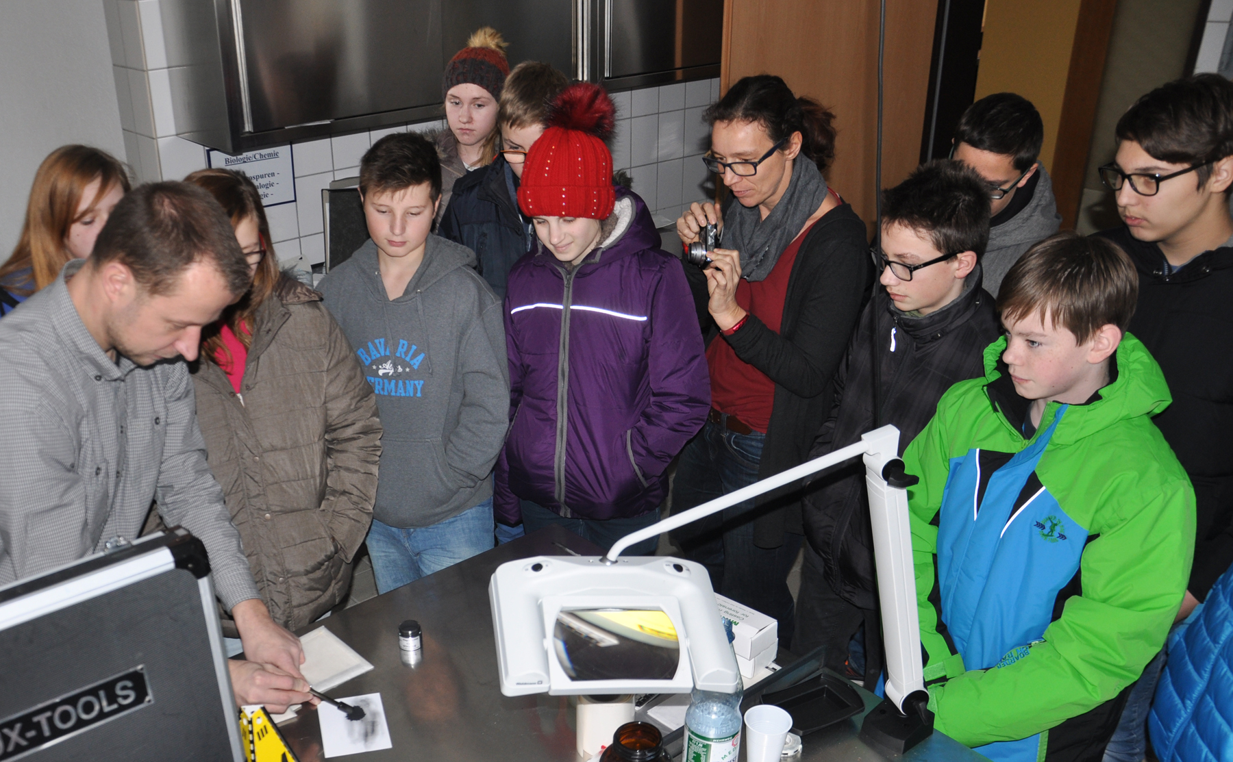 "Das war genau der richtige Einstieg in unser Chemieprojekt", freut sich Simone Kohl, Lehrerin an der Realschule plus in Simmern. Gemeinsam mit ihrer Kollegin und 30 Schülern besuchte sie zu Beginn der Projektwoche, in der die forensische Chemie im Vordergrund stand, die Hochschule der Polizei Rheinland-Pfalz am Campus Hahn. Nach allgemeinen Informationen zur Hochschule und zum Polizeiberuf lauschten die Schüler gespannt den Ausführungen von Kriminalhauptkommissar Josef Recktenwald, der ihnen im Ausbildungs- und Prüfungszentrum, in dem die angehenden Polizeikommissare schon früh mit der praktischen Polizeiarbeit konfrontiert werden, einen interessanten Einblick in die Kriminaltechnik gewährte. Neben allgemeinen Grundsätzen im Zusammenhang mit Fingerspuren, demonstrierte der erfahrene Kriminaltechniker anhand unterschiedlicher Verfahren deren Sicherung. "Selbst einmal mit dem Rußpinsel zu arbeiten und Spuren sichtbar zu machen, hat mich besonders fasziniert", berichtete ein Schüler. Als sehr spannend und hochinteressant bezeichneten die Schüler am Ende ihre Exkursion an die Hochschule der Polizei.
