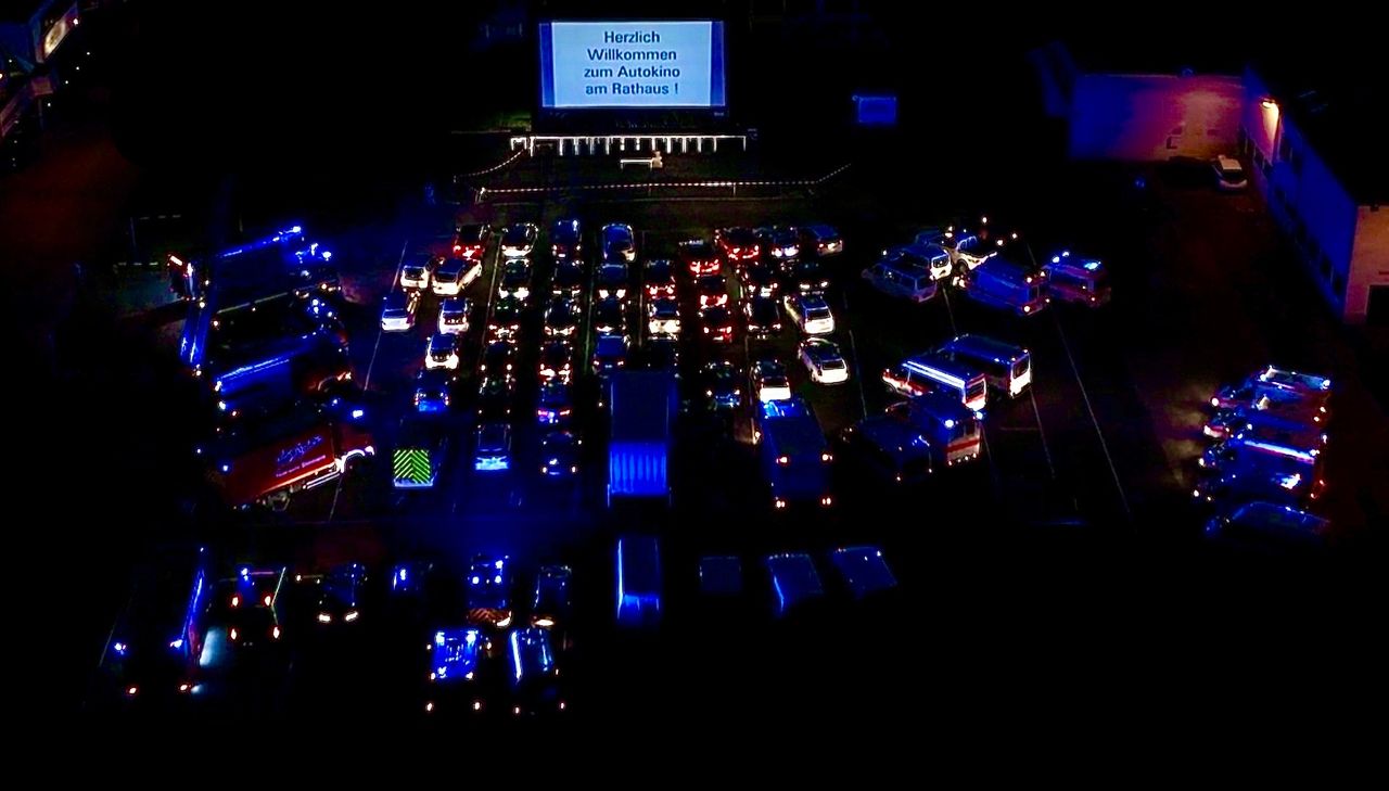 So bot sich am Samstagabend ein außergewöhnlicher Anblick auf dem Platz des Autokinos im Zentrum von Simmern; dicht gefüllt mit Dutzenden Dienst- und Einsatzfahrzeugen von Deutschem Roten Kreuz, Malteser Hilfsdienst, Diakonie, Caritas, Pflegestationen, Feuerwehr und Technischem Hilfswerk u.v.m. aus der gesamten Region. Die Aktion ist bisher einzigartig in Europa. Gezeigt wurde der Film "Das perfekte Geheimnis". Zu Beginn des Filmes schickte das prominente Schauspieler-Ensemble um Elyas M’Barek und Jella Haase zudem auch eine exklusive Videobotschaft an die Corona-Retter aus Simmern.
