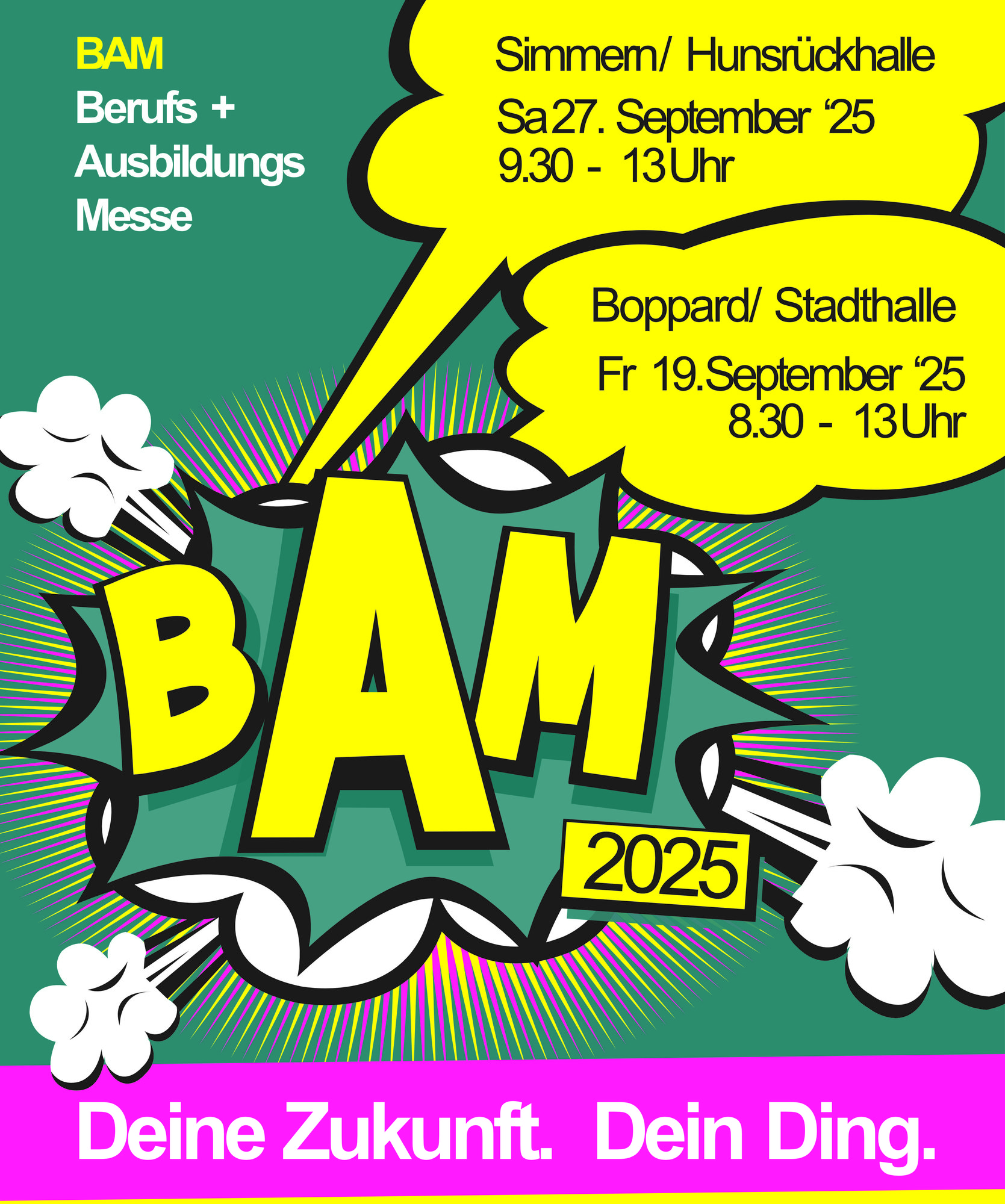 Alle zukünftigen Schulabgänger und Berufseinsteiger, die sich informieren wollen, sollten sich einen der Termine im Kalender markieren: Die Berufs- und Ausbildungsmesse (BAM) in der Stadthalle in Boppard findet am Freitag, 19. September, von 8.30 bis 13 Uhr statt. Mehr als 40 Betriebe und Institutionen aus der Region repräsentieren mannigfaltige Berufsfelder. Nur eine Woche später folgt die BAM in der Simmerner Hunsrückhalle - am Samstag, 27. September, von 9.30 bis 13 Uhr. Hier haben sich rund 60 Unternehmen angekündigt.