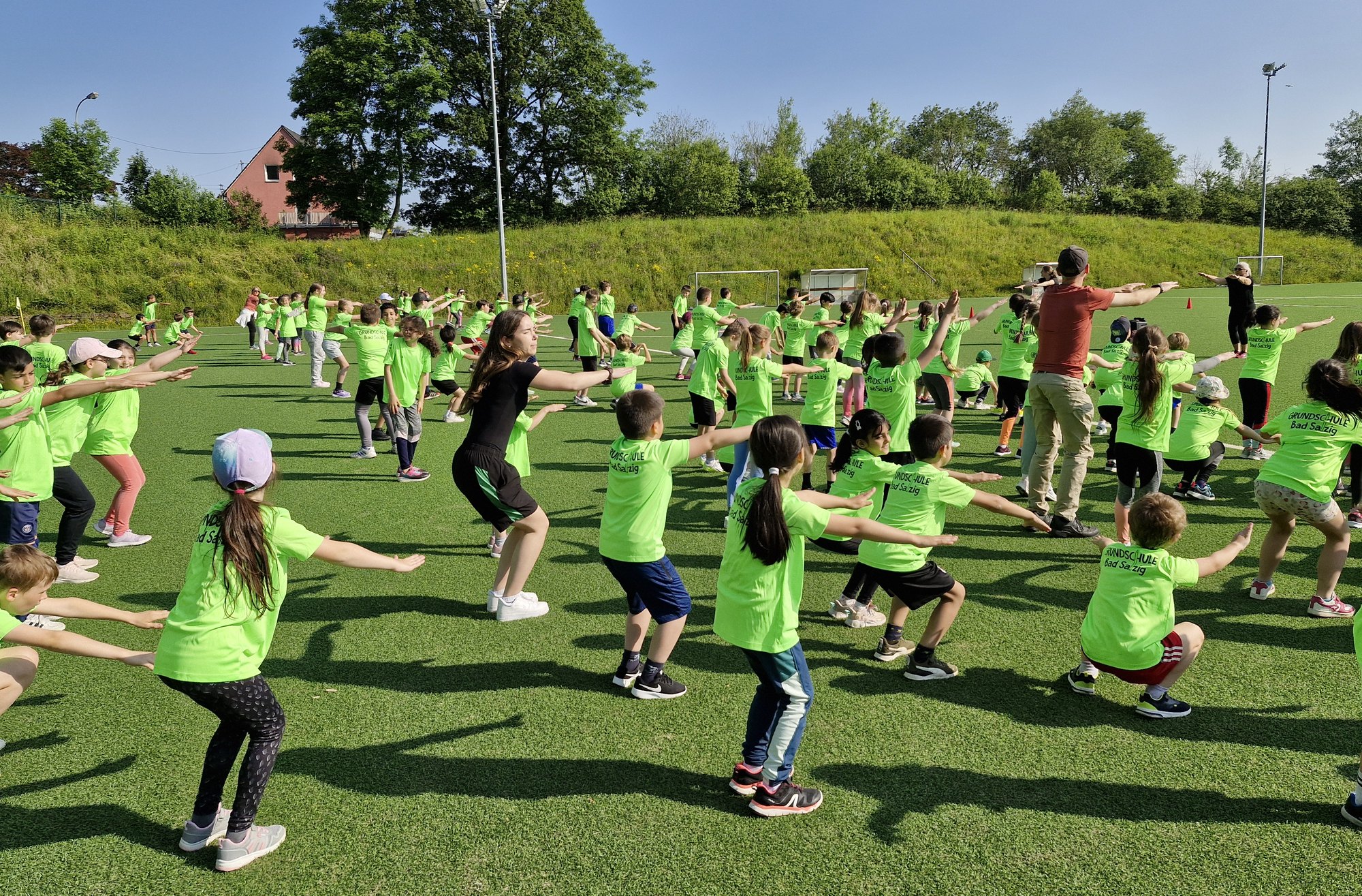 Anfang Juni ging es sportlich weiter. Bei lang ersehntem Sonnenschein wurden die Bundesjugendspiele nach neuem Konzept im BOMAG-Stadion ausgetragen. Nachdem sich gemeinsam aufgewärmt wurde, standen verschiedene Disziplinen der Leichtathletik auf dem Programm. Laufen, Springen und Werfen mit großem Einsatz bei strahlenden Kinderaugen. Klasse haben auch die eingeladenen Wackelzähne der umliegenden Kindergärten die Übungen absolviert und konnten gleichzeitig schon einmal in das zukünftige Schulleben hineinschnuppern. Besonders schön: Alle Riegen wurden von Kindern der jeweiligen Jahrgangsstufe angeführt. Diese haben ihren Job als Riegenführer prima erfüllt und die Kinder zeigten durch ihr faires Verhalten, wie selbstständig und teamfähig sie schon im Grundschulalter sind.