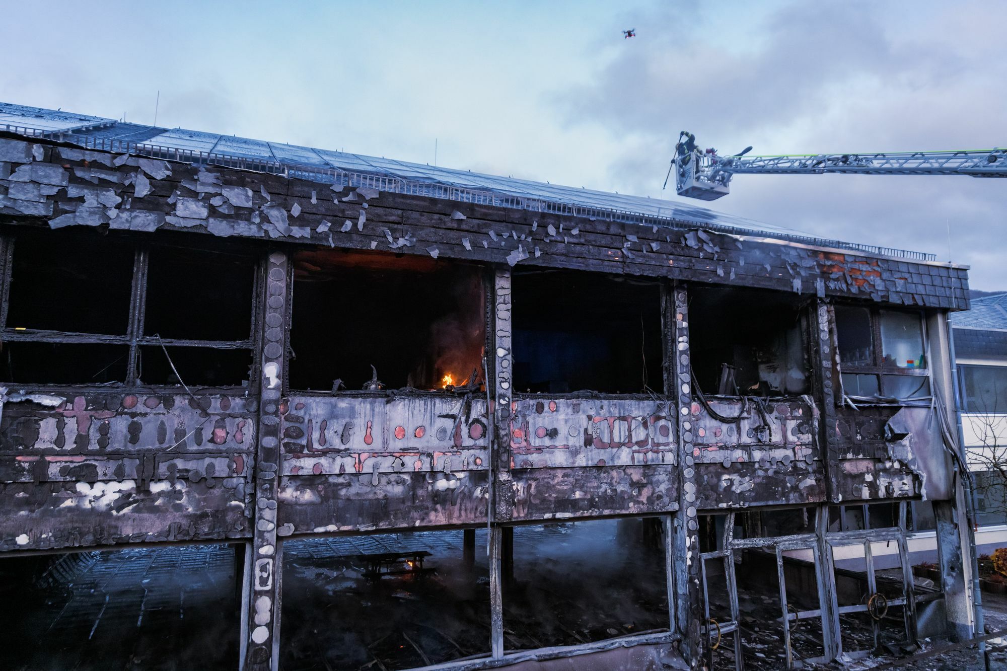 Gegen 16 Uhr wurde den Einsatzkräften ein Brandherd an der Grundschule Bald Salzig (Wildbergstraße 7) gemeldet. Passanten meldeten einen brennenden Tisch unter einem Vordach der Pausenüberdachung in der Grundschule Bad Salzig. Das Feuer schlug allerdings schnell auf die Hausfassade der Grundschule über. Beim Eintreffen der Rettungskräfte brannten bereits die Pausenhalle und das Bürogebäude lichterloh. Die Rauchsäule war noch aus großer Entfernung zu sehen. Nach einer Stunde hatten die Einsatzkräfte das Feuer gelöscht. Zum Ausbruch des Brandes war niemand in der Grundschule. Allerdings verursachte der Brand einen immensen Gebäudeschaden von geschätzt einer Million Euro. Weiterhin besteht Einsturzgefahr für das Gebäude, welches durch einen Statiker derzeit geprüft wird. Die Ermittlungen der Kriminalpolizei dauern an. Die Polizei bestätigt, dass ein 13-jähriges Kind und zwei jugendliche Personen mit dem Brandgeschehen in Verbindung zu bringen sind und im Verdacht stehen, das Feuer fahrlässig auf der Tischplatte verursacht zu haben. Das 13-jährige Kind ist noch strafunmündig und kann daher strafrechtlich nicht verfolgt werden. Gegen die beiden 14- und 15-jährigen Jugendlichen wird wegen des Verdachts der fahrlässigen Brandstiftung ermittelt. Sie werden zeitnah formell angehört. Nach SWR-Informationen soll für die etwa 120 Schüler nach den Weihnachtsferien im Gemeinschaftshaus eine provisorische Grundschule eingerichtet werden.