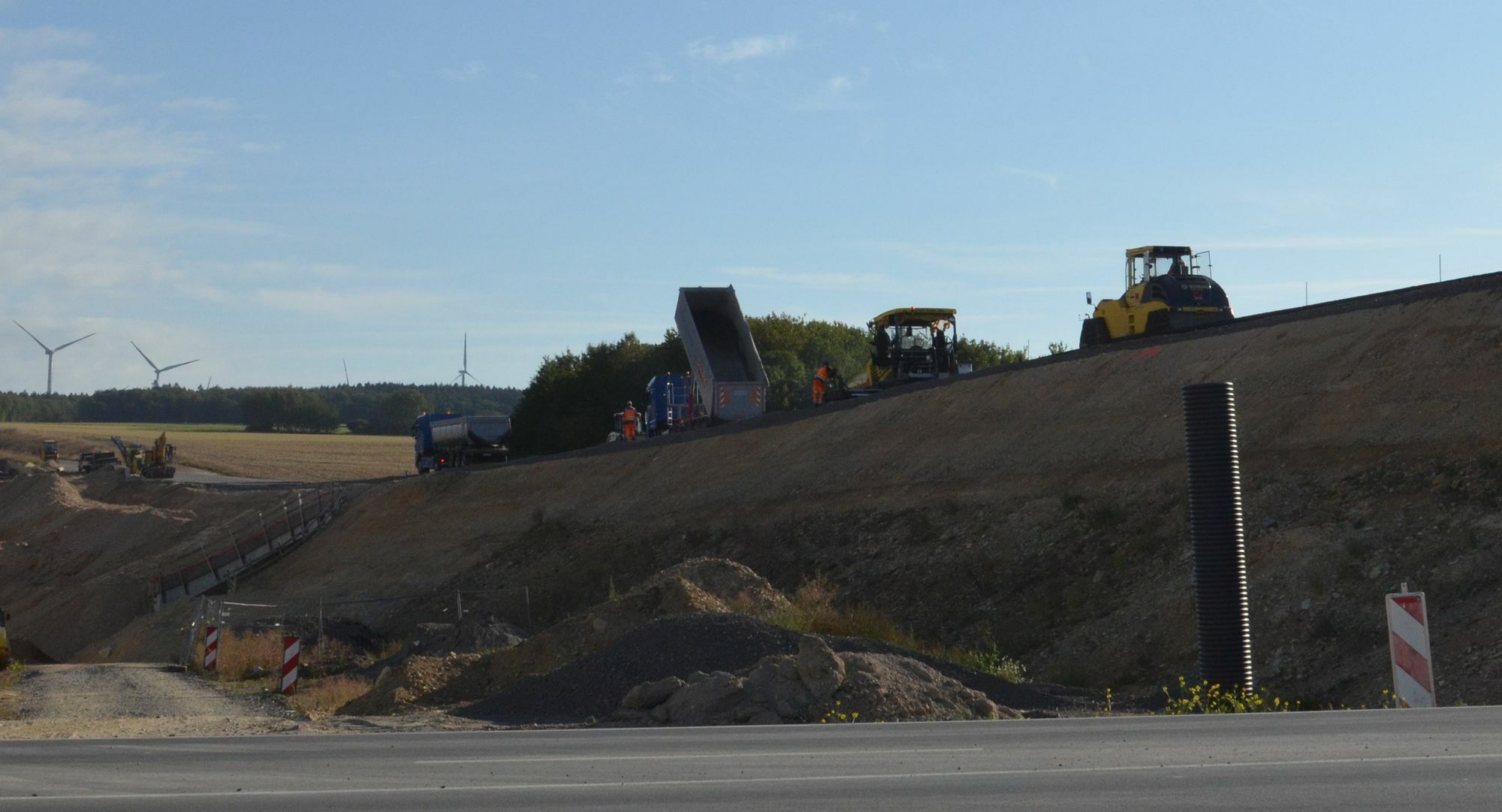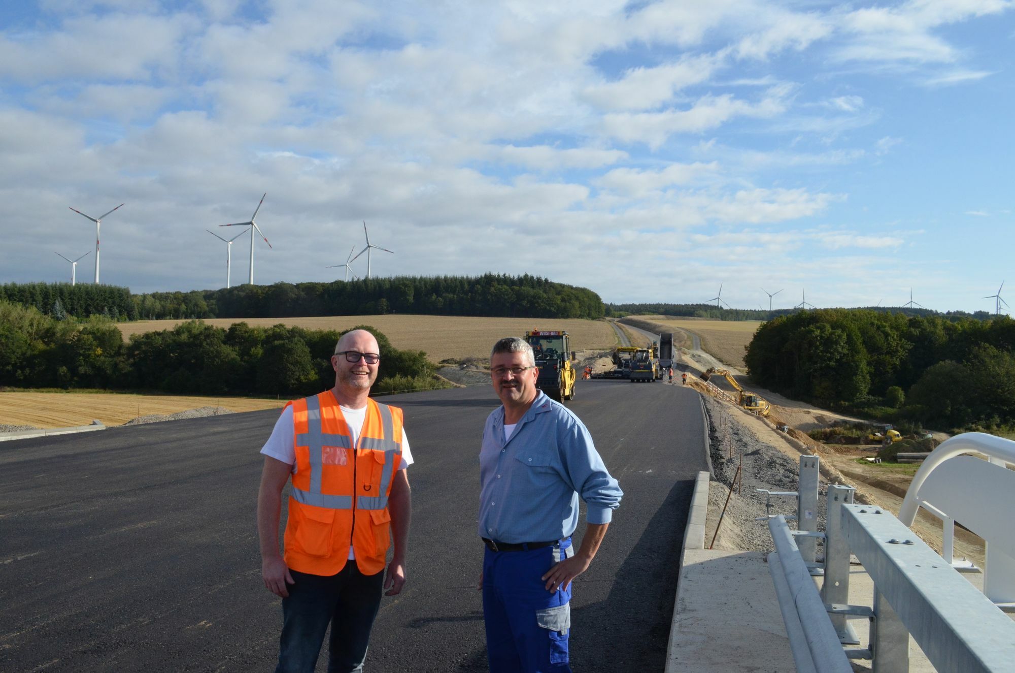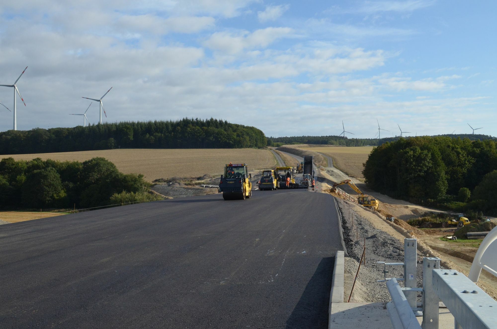 Der Landesbetrieb Mobilität (LBM) Bad Kreuznach rechnet damit, dass die Freigabe der Umgehungsstrecke Ende Oktober/Anfang November erfolgen kann. Am morgigen Freitag, 6. September, soll die Deckschicht fertiggestellt werden, erklärt Thomas Klockner von der Firma Wust. Dann sind die Arbeiten an der Fahrbahn abgeschlossen. Anschließend muss noch der Anschluss der Umgehung bei Braunshorn eingerichtet werden und es fallen diverse „kleinere“ Streckenarbeiten an (z.B. Leitplanken, Straßenmarkierungen, usw.). Das wird noch ein paar Wochen in Anspruch nehmen, bis alles abgenommen werden kann. „Wir sind aber auf der Zielgeraden“, freut sich Gödenroths Bürgermeister Gerd Emmel. Die Kosten der Baumaßnahme belaufen sich auf rund 16 Millionen Euro.
