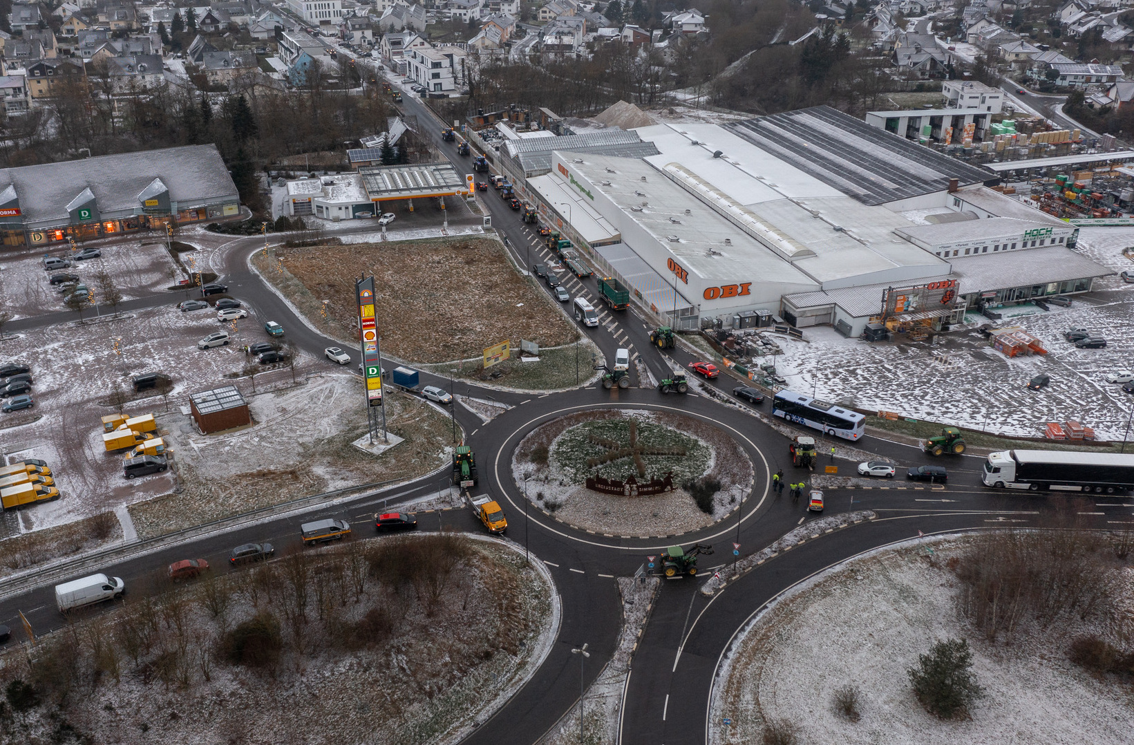 In der zweiten Januarwoche protestieren zahlreiche Bauern im ganzen Land gegen die Sparmaßnahmen der Bundesregierung und die Agrarpolitik der letzten Jahre. Denn für viele waren die Streichungen der Agrarrückvergütung und der KFZ-Steuervergünstigungen (die mittlerweile zum Teil wieder zurückgenommen wurden) der Tropfen, der das Fass zum Überlaufen gebracht hatte. Protestaktionen gab es auch in großer Anzahl im Rhein-Hunsrück-Kreis am Montag, als Bauern mit Traktorenkonvois und Blockaden den Verkehr an vielen Stellen im Kreis lahmlegten. Auch regionale Unternehmen zeigten sich solidarisch und beteiligten sich mit Fahrzeugen an den Protestaktionen. In Kastellaun kam es schon am frühen Morgen zu ersten Blockaden, ebenso in Simmern und Kirchberg. Hier waren bereits um 5 Uhr Traktoren im Industriegebiet unterwegs zur Anschlussstelle auf die B 50, um diese zu blockieren. Betroffen von Aktionen waren auch weitere Auffahrten auf die A61, B50 und B327.