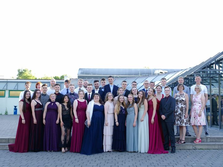 In der festlich geschmückten Hunsrückhalle eröffnete der Schulleiter, Oberstudiendirektor Willi Adam, mit seiner Rede an die Abiturient die Feier. Besonders begrüßte er die Abiturienten, Ehemaligen, Lehrerinnen und Lehrer, Eltern und Familien, den Bürgermeister der Stadt Simmern, Herrn Dr. Nikolay, Frau Lehnhart als Schulelternsprecherin in Vertretung für Frau Platten, den ehemaligen Schüler Julius Bornschein, der vor zehn Jahren der jüngste Abiturient war, den es jemals an der BBS Simmern gegeben hat. Er beglückwünschte die Abiturienten. Der Höhepunkt dieses Abends war die Verleihung der Zeugnisse. Insgesamt qualifizierten sich 39 Schüler für die Abiturprüfung und 37 bestanden diese. Die jeweiligen Kursleiter, Caroline Kohl, Anja Slawski und Gerwin Appelrath begleiteten ihre Schützlinge auf die Bühne, die Zeugnisse wurden durch Frau Bast und Herrn Adam überreicht. Besonders anerkennenswert sind die hervorragenden Leistungen von sechs SchülerInnen, die ihr Abitur mit einer Eins vor dem Komma bestanden. Jahrgangsbester mit dem Notendurchschnitt von 1,0 ist Billy Scheid, einen Durchschnitt von 1,2 erlangte Elia Stenner, einen Durchschnitt von 1,8 erreichten Viktoria Fiterer, Marvin Geis und Mathias Wierschem und Manuel Stenner erreichte den Durchschnitt von 1,9. Billy Scheid und Elia Stenner wurden für diese außerordentlichen Leistungen mit einem Preis des Fördervereins der BBS Simmern geehrt. Den Preis der Ministerin für besonderes soziales Engagement erhielten in diesem Jahr aus gegebenem Anlass zwei Preisträger: Billy Scheid und Viktoria Fiterer. In ihrer Funktion als Leiterin des Beruflichen Gymnasiums überreichte Studiendirektorin Elisabeth Bast diesen. Die BBS Simmern verabschiedet sich von einem tollen Jahrgang, der die Abschlussfeier sehr gut organisierte und den inoffiziellen Teil mit einem schönen Programm abrundete. Die Abiturienten bedankten sich mit eloquenten Reden bei den unterrichtenden Kollegen und zeigten auch ihr tänzerisches Können. Ein besonderer Dank gilt den Schülern der Jahrgangsstufe 12 des Wirtschaftsgymnasiums, die bei den Vorbereitungen halfen und den Abend über dafür sorgten, dass alle Gäste bedient wurden.