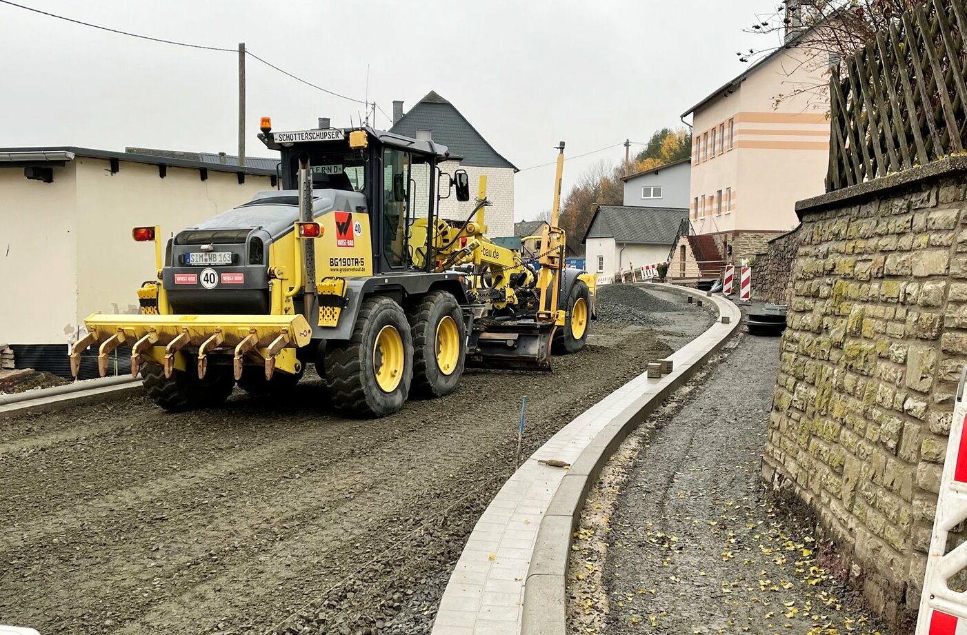 Die Arbeiten sind allerdings schon weit vorangeschritten, sehr zur Freude auch von Bürgermeister Günter Kunz. »Alles ist gut vorangekommen, was sicher mit der zum Großteil guten Witterung in diesem Jahr zusammenhängt.« Aber auch die Zusammenarbeit mit der ausführenden Firma Wust-Bau lobt er. Dieser Tage sollen die noch ausstehenden Asphaltarbeiten abgeschlossen werden. Weitere Arbeiten erfolgen dann nach der Winterpause, was eine Aufrechterhalten der Sperrung erfordert. Zumindest kann die Baustelle so winterfest gemacht werden, damit Anlieger wieder einfacher auf ihre Grundstücke kommen.