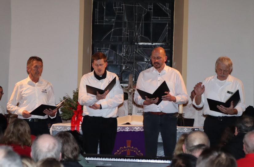 Harald Braun brachte das Publikum auf der Oberlinger Orgel sogleich in weihnachtliche Stimmung. Das Konzert mitgestaltet haben die Gruppe Bell@Music, Amalia Liesenfeld, Steffi Becker, der Leidenecker Kinderchor und MGV, der Männergesangverein Mastershausen und das M-Quartett.