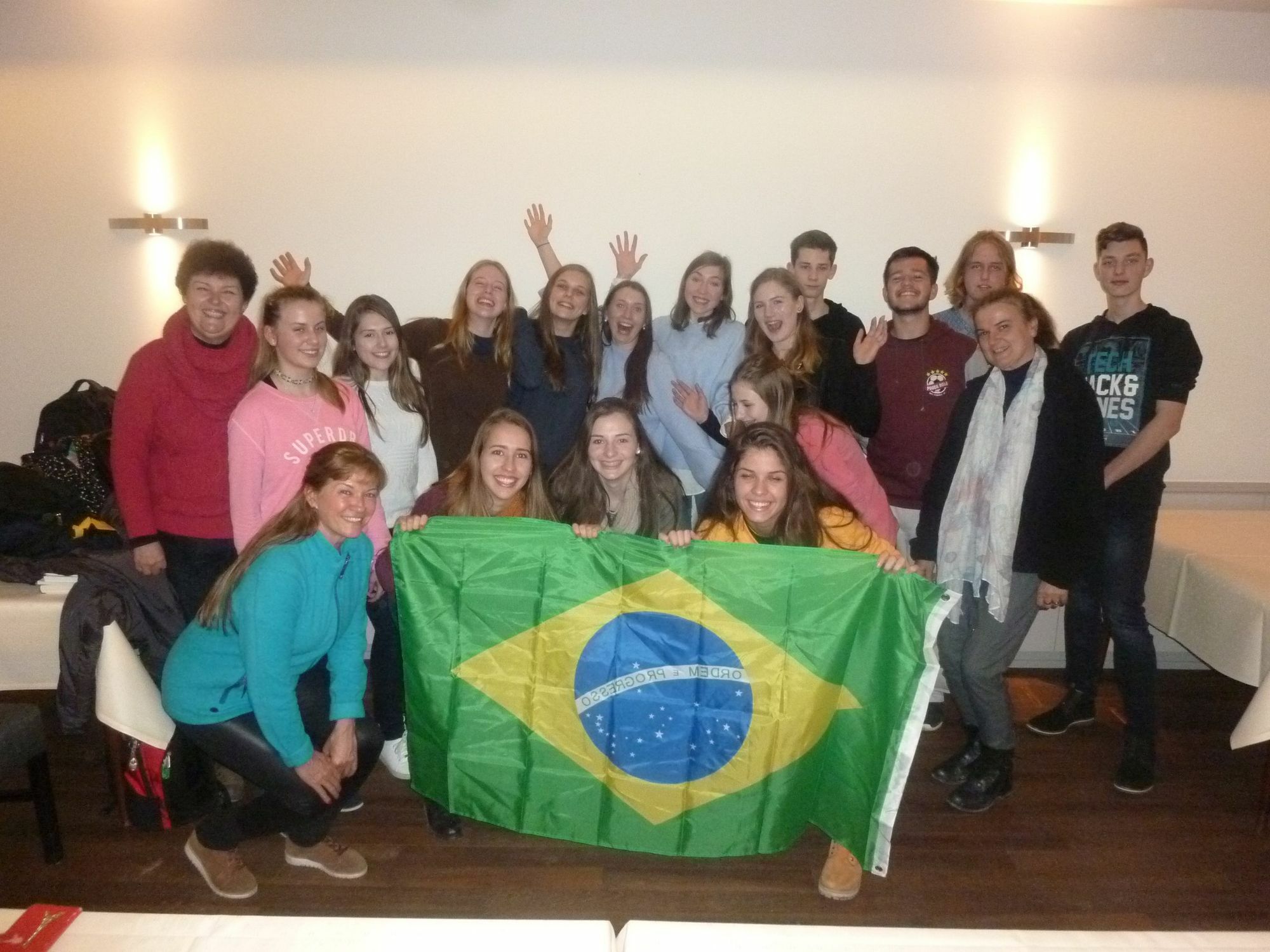 Die Gruppe aus Nova Petrópolis in Südbrasilien machte auf Einladung von Freunden aus der Stadt Emmelshausen im Rahmen ihrer Europareise mit den Zielen Paris, Köln, Hamburg, Berlin, München, Salzburg und Rom auch Station im Hunsrück. Die Gäste vom südamerikanischen Kontinent waren bei Gastgeberfamilien der IGS und der Stadt Emmelshausen untergebracht. Auf dem Programm standen vormittags Schulbesuche in der IGS und am Nachmittag verschiedene Ausflüge zu den Sehenswürdigkeiten der Region, beispielsweise die Hängebrücke Geyerlay, die Burg Rheinfels und das Eisenbahnmuseum in Emmelshausen. Den Abschluss der Besichtigungstouren bildete eine Fahrt zur Festung Ehrenbreitstein in Koblenz. Beim gemütlichen Abend mit Abendessen in einem Emmelshausener Hotel gab es reichlich Gelegenheit zum Austausch zwischen den meist gut deutschsprechenden Gästen, den aufnehmenden Schülern, deren Eltern und anderen Brasilienfreunden aus der Stadt Emmelshausen. Dabei wurde rege über die gemeinsamen Wurzeln gesprochen, die daher rühren, dass 19. Jahrhundert viele Menschen aus dem Hunsrück nach Brasilien auswanderten. Einige der Besucher hatten sogar deutsche Nachnamen wie „Weber“ oder „Zilles“ und konnten Hunsrücker Mundart sprechen. Die Stadt Emmelshausen strebt derzeit eine Städtepartnerschaft mit Nova Petrópolis an. In diesem Zusammenhang waren bereits Vertreter aus Emmelshausen mit einer Delegation in Brasilien. Die aufnehmenden Schülerinnen und Schüler der IGS haben in der Zeit des Austauschs neue Freundschaften geknüpft und freuen sich auf ein mögliches Wiedersehen mit ihren Gästen. Insgesamt war der Besuch für alle Beteiligten eine gewinnbringende Erfahrung.