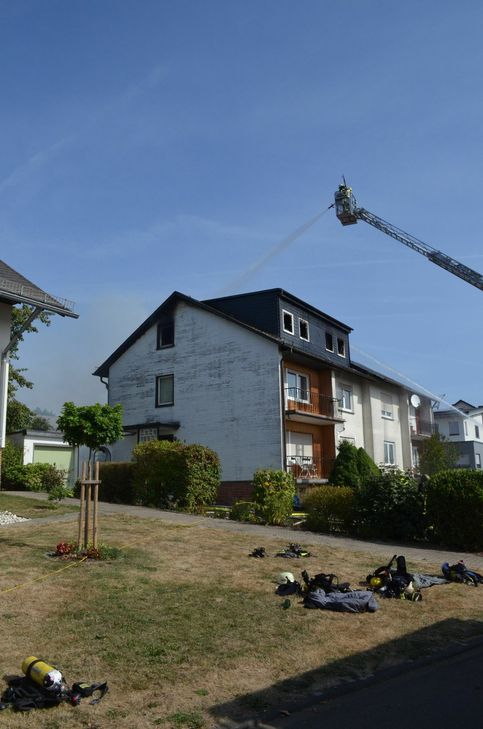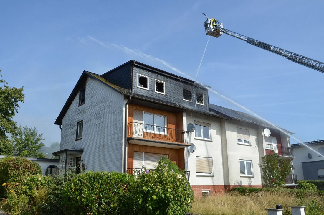 UPDATE (13.45 Uhr): Der einzige Bewohner der brennenden Etage kletterte nach Aussage der Polizei auf das Hausdach und wurde dort von der Feuerwehr gerettet. Zur Beobachtung wurde dieser in ein Krankenhaus in Koblenz eingeliefert. Die Löscharbeiten dauern weiter an. Eingesetzte Kräfte: Feuerwehren aus Beltheim, Kastellaun, Mastershausen, Bell, Buch mit insgesamt 50 Kräften Kräfte DRK und Polizei Simmern