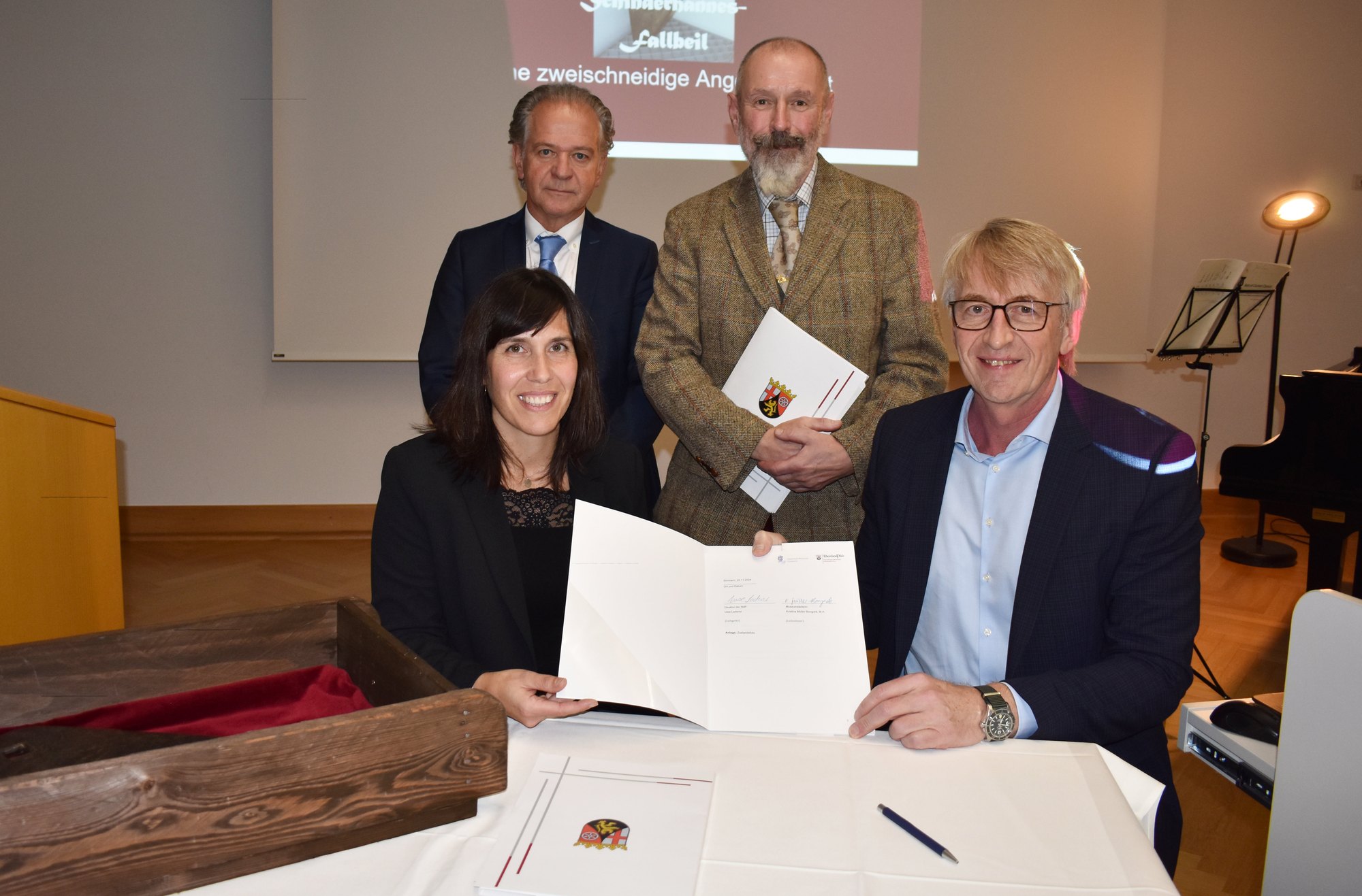 Seit Mittwoch, 20. Novmeber, ist das Hunsrück-Museum in Simmern um ein geschichtsträchtiges Exponat reicher. Die Hochschule der Polizei (HdP) Rheinland-Pfalz hat die Fallbeilschneide, mit welcher der Räuberhauptmann Schinderhannes (Johannes Bückler) im Jahr 1803 hingerichtet wurde, als Dauerleihgabe an das Museum übergeben.