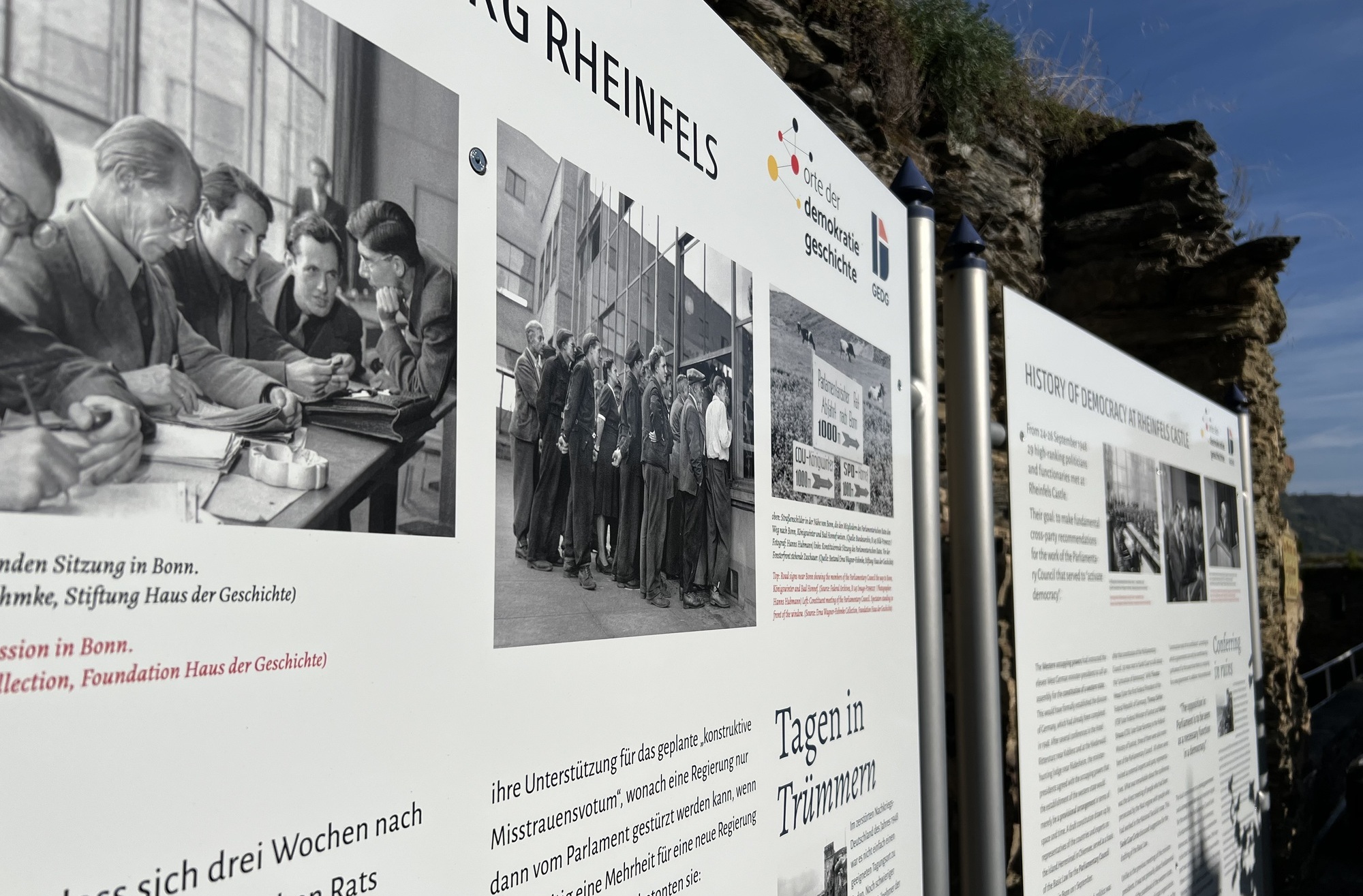 Dass die Burg Rheinfels ein Ort der Geschichte des Barocks und der Romantik ist, war bisher hinlänglich bekannt. Dass die ehemals größte Festungsanlage am Mitterhein aber auch ein Ort der jüngeren Demokratiegeschichte ist, war bisher im Bewusstsein der Bevölkerung kaum verankert: Ein Teil der DNA des Grundgesetzes der Bundesrepublik Deutschland liegt ebenda. Am Montag, 25. September, wurden zwei historische Gedenktafeln auf Burg Rheinfels eingeweiht, die an die Entstehung des deutschen Grundgesetzes erinnern und mit denen die Burg Rheinfels in die bundesweite Liste der "Orte der Demokratiegeschichte" aufgenommen wurde.