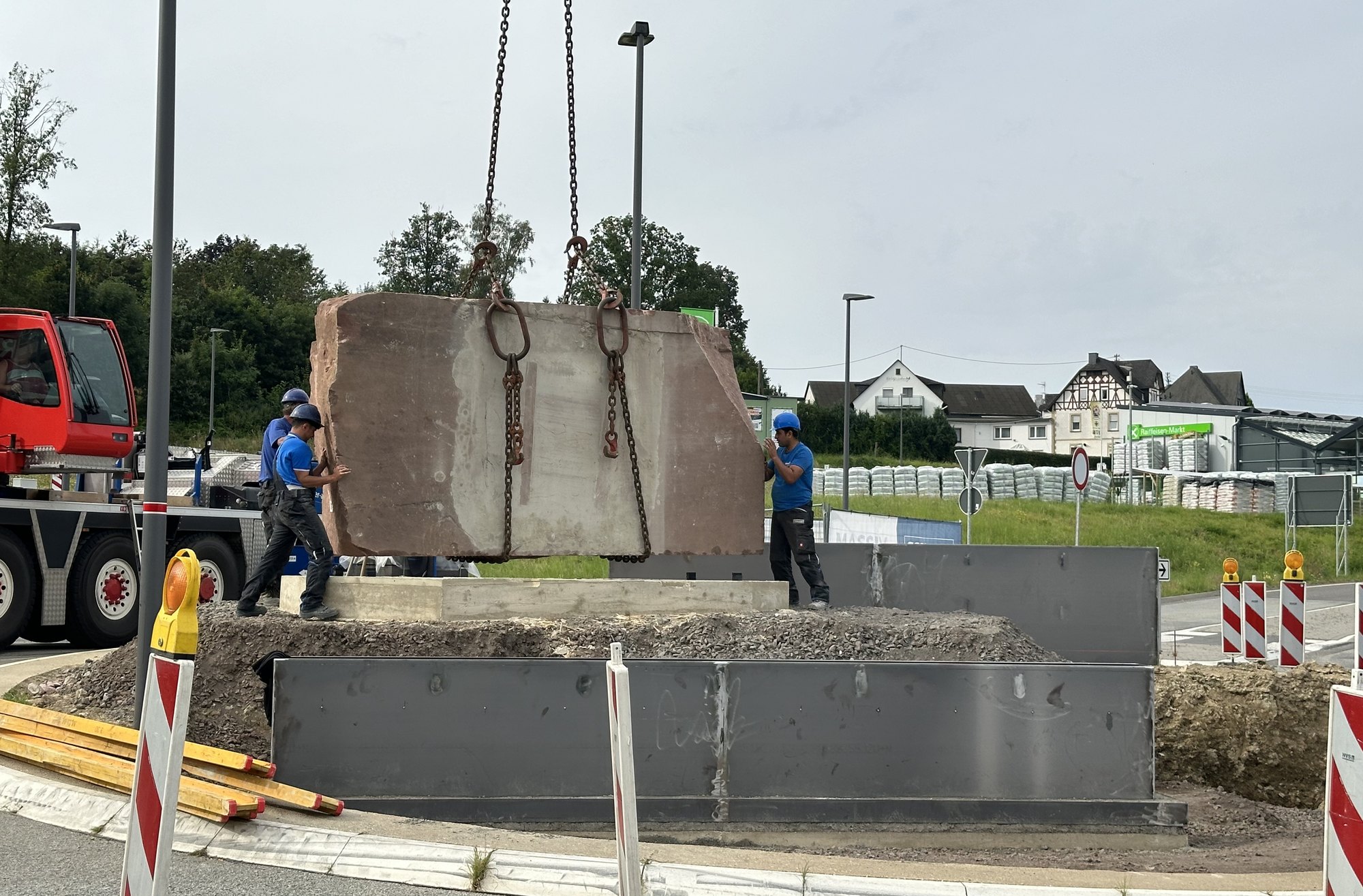 Der Kreisel, der die enge Partnerschaft zwischen Emmelshausen und der brasilianischen Stadt Nova Petropolis symbolisiert, hat einen wichtigen Meilenstein erreicht. Kürzlich wurde ein 20 Tonnen schwerer Monolith in der Mitte des Kreisels platziert.