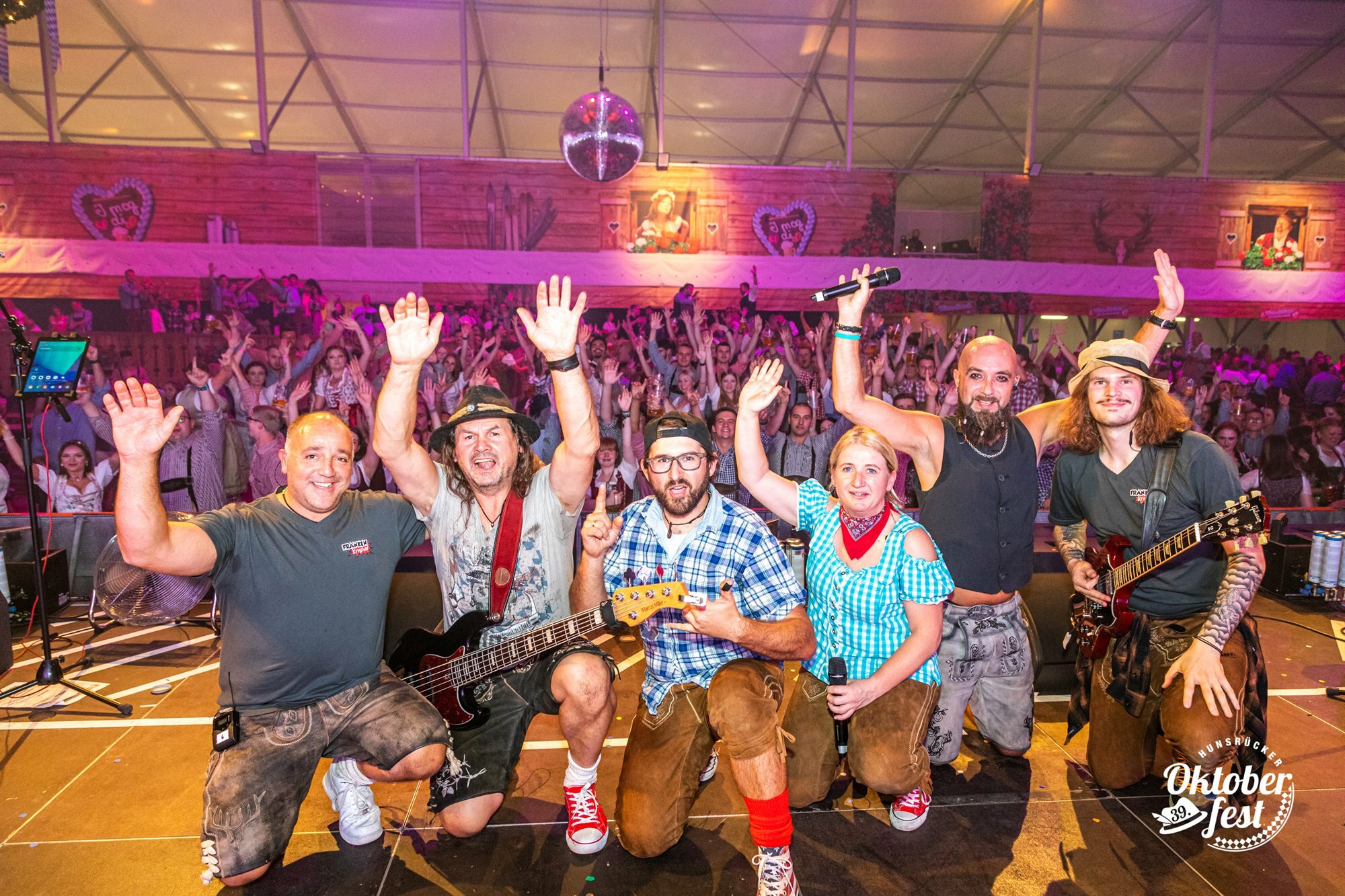 Friedlich und mit toller Stimmung verlief das zweite Wochenende in der neuen Festhalle des 39. Hunsrücker Oktoberfestes auf dem Flughafen Hahn - und bereits am kommenden Freitag, 30 September, geht es mit der »Mountain Crew« in die nächste Runde. Die fünf Beach-Boys in Lederhosen aus Oberösterreich sind bekannt dem TV und von großen Volksfesten wie der Wiener Wiesn oder dem Cannstatter Wasen. Mit ihrem Wirtshaussong landeten sie einen viralen Hit, der mittlerweile über 10 Millionen Klicks auf TikTok hat. Am Samstag, 1. Oktober, wird die Party dann »EchtSTARK!« Mit Partypower, Pop, Rock, Schlager und Alpenrock reißt die sechsköpfige Truppe um Frontfrau Lisa mit allen Gästen die Festhalle ab. Am Sonntag, 2. Oktober, folgt dann mit den »Dorfrockern« das nächste Highlight der Oktoberfest-Saison am Hahn. Mit Ihrem Mix aus Party-Rock und volkstümlicher Musik wurden die Jungs bereits für den Echo nominiert und begeistern in den letzten Jahren Besucher auf über 1.200 Livekonzerten im In- und Ausland. In den letzten Tagen erreichten Sie durch einen gemeinsamen Videodreh mit Sänger Heino national Schlagzeilen. Ob die Dorfrocker Heino am Sonntag als Star mitbringen, steht noch nicht fest. Tickets gibt es an der Abendkasse oder online unter: www.oktoberfest-hunsrueck.de/tickets/