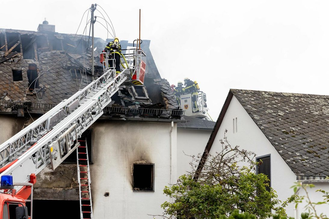 Nachbarn hatten Rauch bemerkt. Beim Eintreffen der Einsatzkräfte geriet die Doppelhaushälfte in Vollbrand und brannte komplett aus. Der rasche Einsatz der Feuerwehren konnte aber ein Übergreifen der Flammen auf die umliegenden Gebäude verhindern. Im Bereich des Dachgeschosses der zweiten Doppelhaushälfte kam es offenbar nur zu leichten Brandschäden sowie zu Rauch im Obergeschoss. „Glücklicherweise sind alle Bewohner rechtzeitig aus den Haus gekommen. Es wurden nur leichte Rauchvergiftungen festgestellt“, sagt Kreisfeuerwehrinspekteur Stefan Bohnenberger. Zur Brandursache können aktuell noch keine Angaben gemacht werden. Im Einsatz waren/sind rund 80 Feuerwehrleute aus der Stadt Boppard und Emmelshausen sowie Mitarbeiter der Westnetz und des DRK.