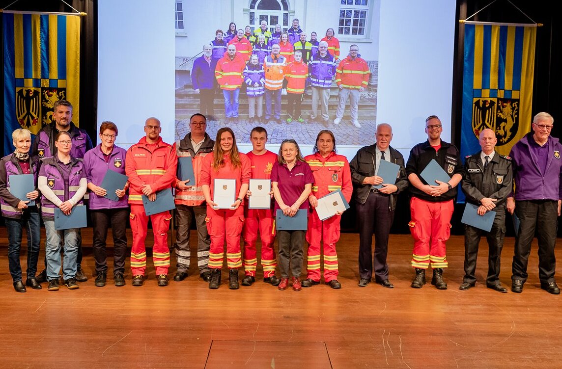 Pfarrer Johannes Dübbelde aus Pfalzfeld wurde bei der feierlichen Veranstaltung als Notfallseelsorger verabschiedet. Von 2000 bis 2022 war er als kirchlicher Notfallseelsorger und Koordinator der Notfallseelsorge im Rhein-Hunsrück-Kreis tätig. Landrat Boch dankte Pfarrer Dübbelde für seinen langjährigen Einsatz in oftmals äußerst schwierigen Situationen, welche auch für die Notfallseelsorger selbst eine erhebliche Belastung bedeuten. Ebenfalls verabschiedet wurde Herr Peter Müller aus Sohren, der 16 Jahre als Ausbildungsleiter der Feuerwehr-Kreisausbildung im Rhein-Hunsrück-Kreis tätig war und nach seiner Wahl zum Bürgermeister der Verbandsgemeinde Kirchberg weiterhin als Ausbilder für die Sprechfunkausbildung zur Verfügung steht. Als Nachfolger wurde Herr Christopher Silbernagel aus Argenthal zum Ausbildungsleiter der Feuerwehr-Kreisausbildung im Rhein-Hunsrück-Kreis bestellt.