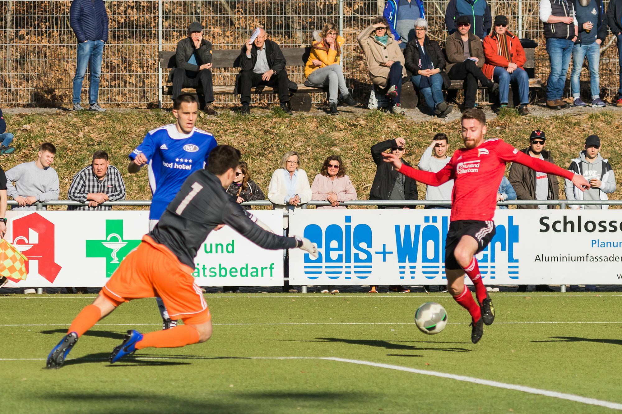 Von Arno Boes. Die knapp 350 Zuschauer sahen einen engagiert auftretenden TSV, der gleich von der ersten Minute an dem Tabellenzweiten Paroli bot. Nach der ersten vom an diesem Tag überragenden Torwart Jonas Börsch abgewehrten Chance der Gäste fanden die Emmelshausener immer besser ins Spiel, eroberten sich Bälle und hatte Möglichkeiten, um sogar in Führung zu gehen. In der 27. Minute war es dann soweit, mit ein wenig Unterstützung der Völklinger Abwehr prallte ein Freistoß von Tobias Lenz zunächst an den Pfosten, dann einem Völklinger ans Bein und von dort aus zum 1:0 ins Tor. In der Folge blieb das Spiel ausgeglichen und erst in der 42. Minute war Börsch bei einem Schuss von der Strafraumgrenze machtlos. Mit dem 1:1 ging es in die Pause. Danach setzte der TSV sein gutes Spiel aus der Abwehr mit öffnenden Kontern fort, hatte sogar Chancen, auf 2:0 zu erhöhen. In den letzten zehn Minuten machten die Saarländer dann noch einmal Druck, aber mehrfach machte Jonas Börsch die Gästechancen zunichte. Am Ende jubelten die TSV-Spieler mit Trainer Julian Feit und den Fans über den Punktgewinn. Damit blieb man zwar noch auf dem 16. Tabellenplatz, rückte aber näher ans Mittelfeld heran. „Das war eine sehr ordentliche Leistung“, so der TSV-Trainer. „Vielleicht wäre sogar mehr drin gewesen, wenn wir unsere Chancen hätten besser nutzen können.“ Motoviert ging der FC Karbach in das Auswärtsspiel in Pfeddersheim. Nach dem Testspielsieg gegen Koblenz ließ Trainer Torsten Schmidt seine Mannschaft unverändert. Die Abwehr hielt zunächst die Gastgeber vom Karbacher Tor weg, der Sturm der Karbacher zeigte sich aber längst nicht so effektiv, wie eine Woche zuvor. Und da auch die Wormser Vorstädter hinten dicht standen, fand in der ersten Halbzeit das Spiel überwiegend zwischen der Mittellinie und den Strafraumgrenzen statt. Erst in der 41. Minute holte die TSG einen Eckstoß heraus und verwandelte den prompt zur 1:0-Führung. Auch in der zweiten Halbzeit fanden die Karbacher wenig Mittel, um in Tornähe der Pfeddersheimer zu kommen. Immer wieder lief man sich fest und aus einer solchen Szene entwickelte sich in der 50. Minute der zweite Treffer für das Heimteam. Tobias Jakobs verlor den Ball am TSG-Strafraum, mit zwei langen Bällen überspielten die Pfeddersheimer die weit aufgerückte Karbacher Mannschaft, nach einem Querpass hatte Karbachs Torhüter Lukas beim finalen Torschuss keine Chance mehr zur Abwehr. Als sieben Minuten später die Gastgeber nach einer weiteren Ecke auf 3:0 erhöhten, ging es für die Karbacher quasi nur noch um Schadensbegrenzung. Mit Dominik Kunz und Linus Peuter brachte Schmidt nach einer Stunde zwei neue Stürmer, die vielleicht schon zu Beginn der zweiten Hälfte angesagt gewesen wären. Zumindest brachten sie noch einmal neuen Schwung in den Angriff. Aber mehr als der Ehrentreffer zum 3:1 durch Kunz in der 87. Minute kam dann doch nicht mehr heraus. Nun muss der FC Karbach in den beiden folgenden Heimspielen versuchen, sich mit weiteren Punkten von der Abstiegszone deutlicher zu entfernen. Die erste Chance dazu ist am Samstag (23. Februar) um 15 Uhr auf dem Quintinsberg gegen den FSV Jägersheim. Der TSV Emmelshausen spielt am selben Tag um 15.30 Uhr bei der Hassia in Bingen um wichtige Punkte gegen den Abstieg.