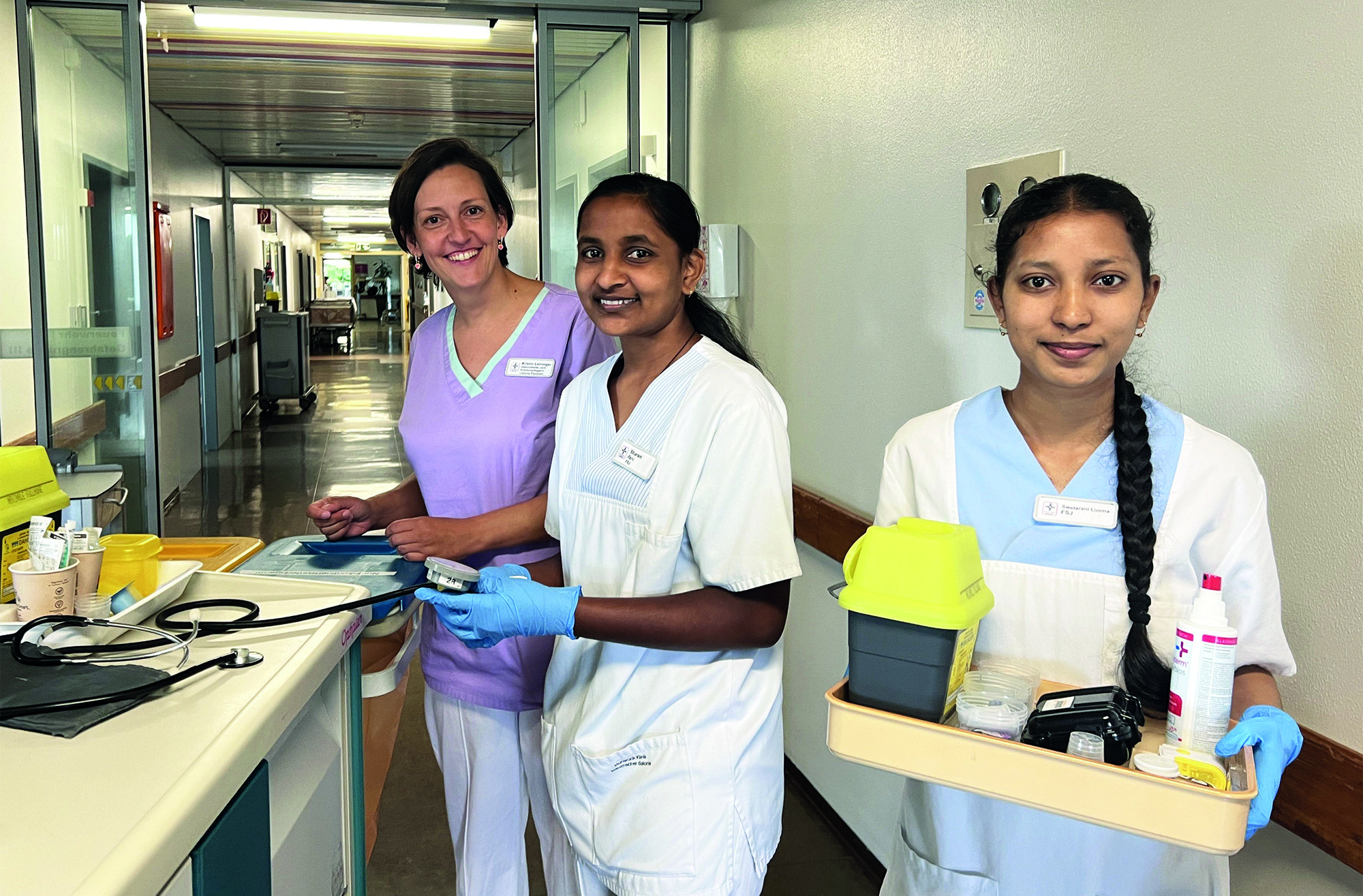 Sweta (21) und Sibarani (22) unterstützen als FSJlerinnen das Pflegeteam auf den Stationen. Zu ihren Aufgaben gehören etwa das Austeilen von Mahlzeiten, Patienten zu Untersuchungen zu begleiten, Blutzucker messen oder für Ordnung im Stationsalltag zu sorgen. Ab August beginnen sie an der Pflegeschule der Stiftung kreuznacher diakonie in Simmern mit ihrer dreijährigen Ausbildung zur Pflegefachfrau und damit in eine neue, selbstbestimmte Lebensphase.