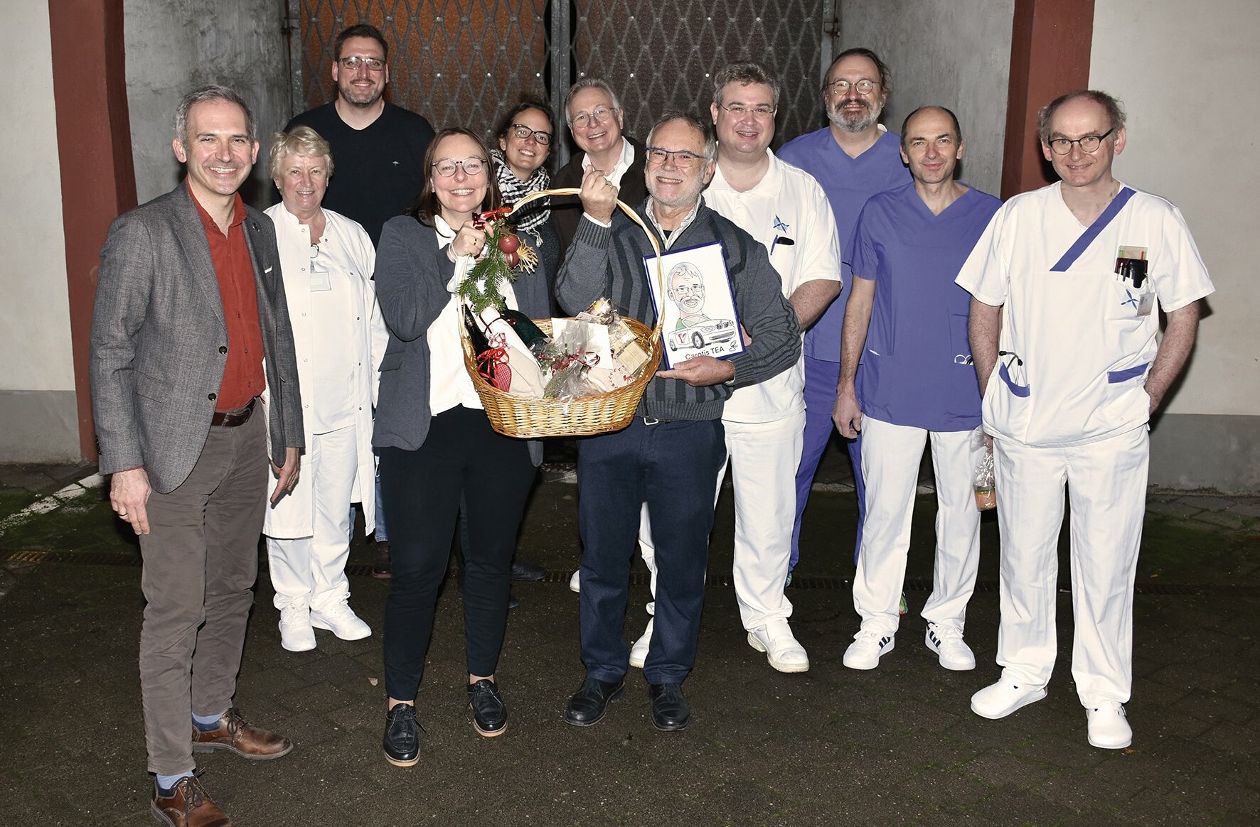 Und dazu trugen viele persönliche Worte und Geschenke bei. "Ich finde es fantastisch, was Sie aus dieser Abteilung gemacht haben. Sie haben hier ein Lebenswerk geschaffen", meinte Dr. med. univ. Björn Raddatz in Vertretung für den Ärztlichen Direktor Dr. med. Andreas Mulfinger. Für die Chirurgen sprach Hans Richard Strohauer einen herzlichen Dank für die gute und kommunikative Zusammenarbeit aus. Der Chefarzt der Klinik für Wundmedizin, Dr. med. Gunnar Riepe, erinnerte an eine gemeinsame Operation "denn du wolltest ja mal erleben, wie man sich in einem Operationssaal fühlt", und überreichte ihm dazu eine selbst gefertigte Zeichnung. Dr. (CS) Janka Matejka, Chefärztin der Klinik für Akutgeriatrie, wünschte Dr. Schubert, dass er im Ruhestand genügend Zeit findet, um seinen Hobbies nachzugehen und seinen neuen Lebensabschnitt genießt.