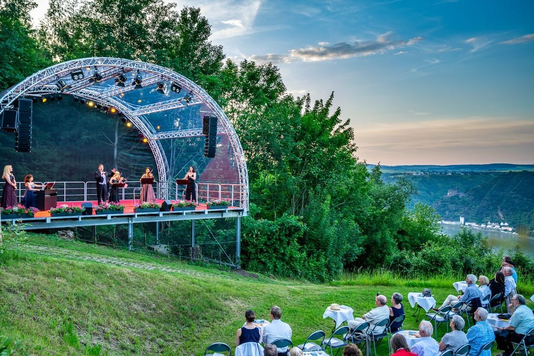 Das I-Tüpfelchen dieses musikalischen Highlights boten der Startenor Stefan Lex und Christiane Linke. Der stimmgewaltige Tenor und die entzückende Sopranistin zogen alle Register ihres Könnens und verzauberten mit brillantem Gesang und mit ihrer überaus charmanten Art das Publikum. Sonne, Mond und Sterne waren dann noch die besten Voraussetzungen, den „One-Million-Dollar-Blick“ auf das Welterbetal so richtig in Szene zu setzen. „Besser kann man sich den Auftakt für die Maria Ruh Classix nicht wünschen, so Gerd Ripp, Initiator dieser Veranstaltungsreihe. Bereits am kommenden Samstag, 2. Juni, gastiert die legendäre Karibikband Paltito Ache auf Maria Ruh (Infos am Mittwoch im WochenSpiegel). Am Tag darauf, 3. Juni, gastieren die Dickenschieder Aplhornbläser zum Frühschoppenkonzert (11 bis 14 Uhr) Eine Woche später, am 10. Juni, tritt an gleicher Stelle der Musikverein Urbar. Bei den Frühschoppenkonzerten ist der Eintritt frei. Danach wird während der Fußball-WM eine kleine Konzertpause eingelegt. Die Bühne wird dann zur Großleinwand umgestaltet und Public Viewing ist angesagt. Karten für die Classix-Wochen gibt's beim WochenSpiegel in Simmern, Tel. 0 67 61 / 9 50 10. Info: www.maria-ruh.de