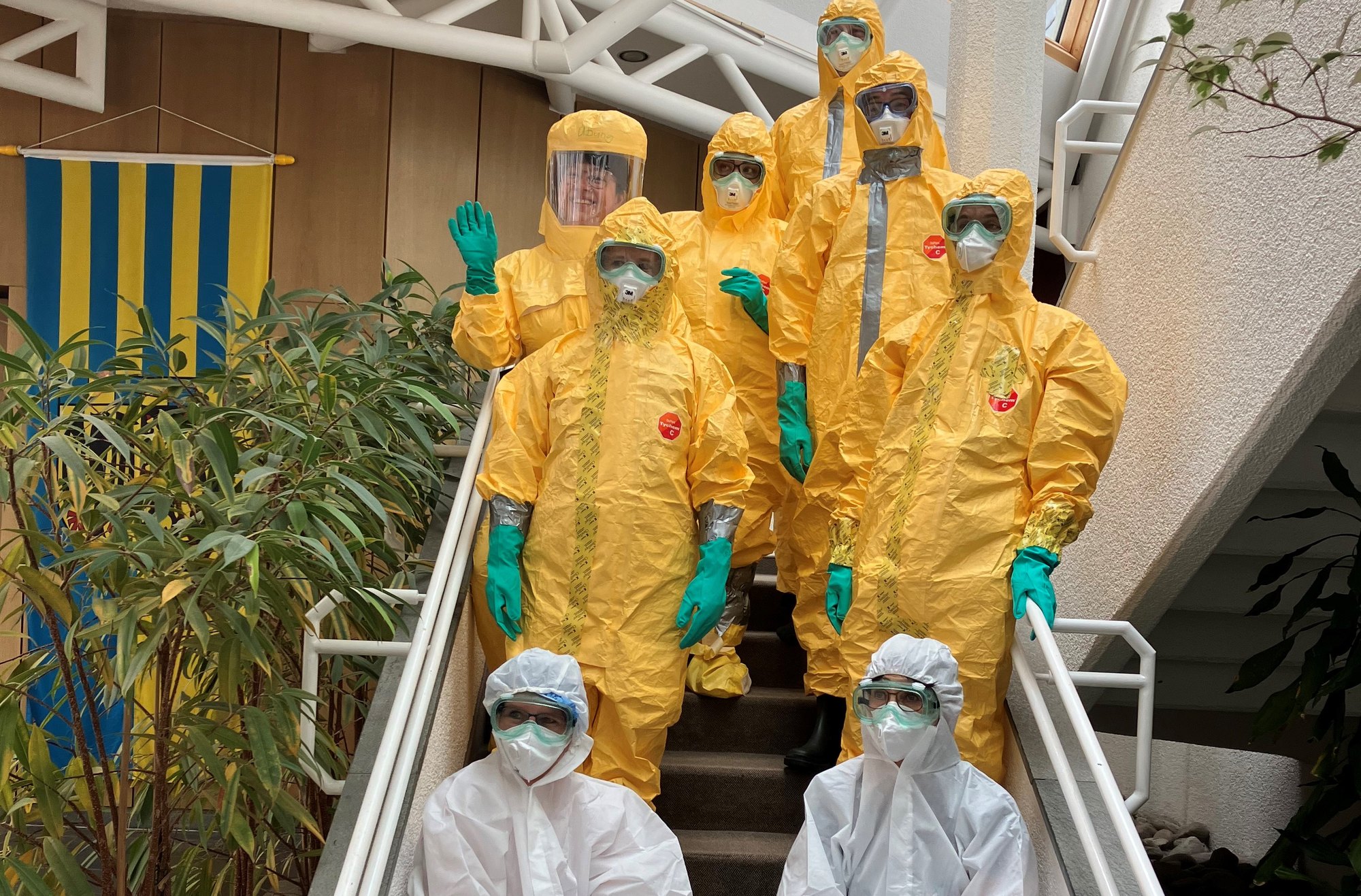 Aus diesem Grund haben über 40 Mitarbeitende aus acht rheinland-pfälzischen Gesundheitsämtern den Umgang mit Schutzanzügen und Atemschutztechnik geübt. Ein Schwerpunkt lag hierbei auf dem korrekten An- und Ausziehen der Anzüge, ohne eine Weiterverbreitung zu riskieren. Das Team des Simmerner Gesundheitsamtes rund um Amtsärztin Dr. Stefanie Bender hat die Planung und Durchführung der Weiterbildungsveranstaltung übernommen und wurde dabei durch die Firma Gregori Arbeitssicherheit unterstützt.
