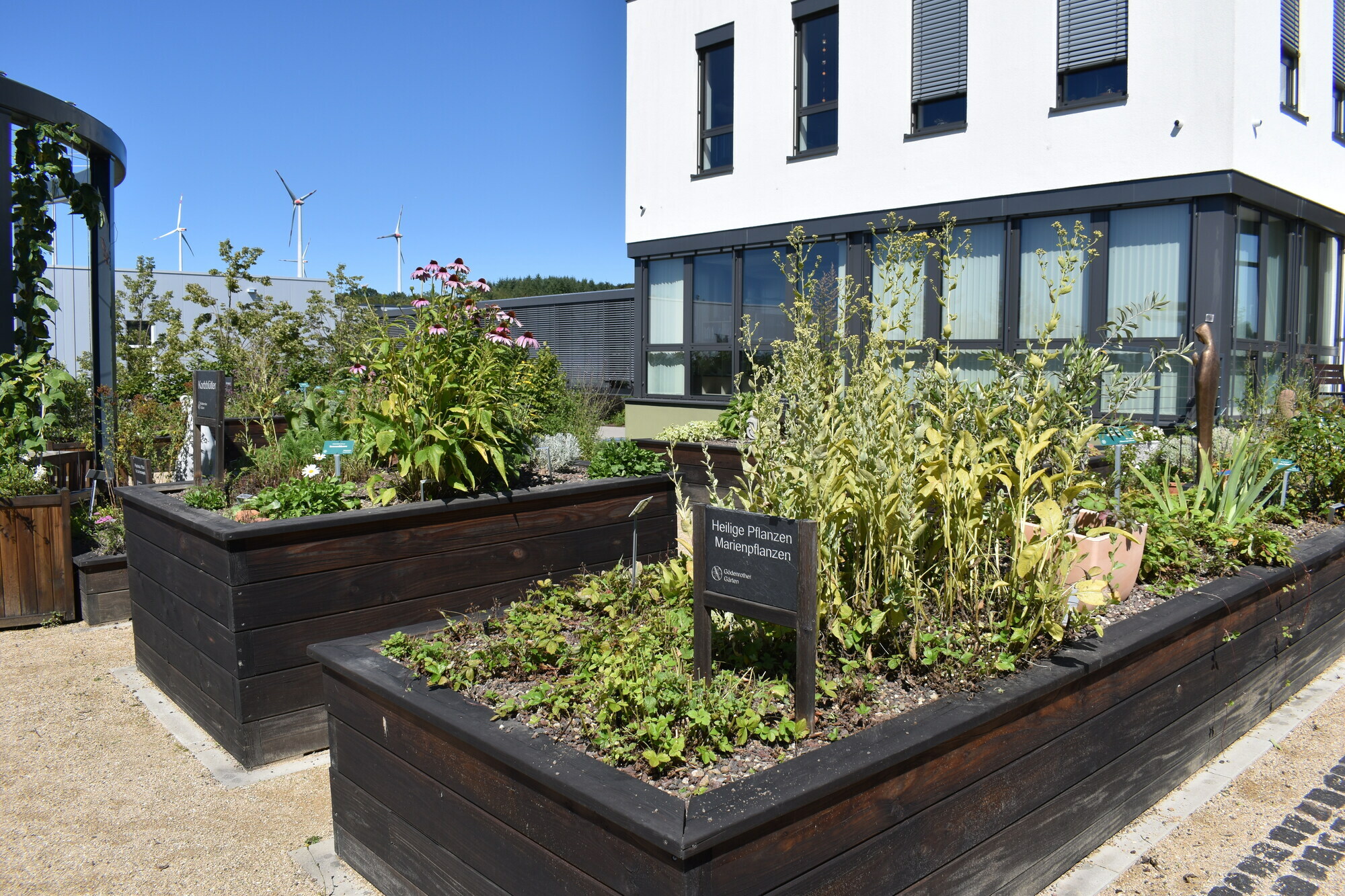 Herzstück und Zentrum ist der Hortus. Die Pflanzenvielfalt des Lehr- und Schaugarten ist groß, wobei die Heilpflanzen nach therapeutischen Gesichtspunkten gruppiert sind. Dazu gehören unter anderem Atemwege, Verdauung oder Haar, Fell und Gefieder - denn beim Hersteller von Ergänzungsfuttermittel ist man auf das Wohl von Mensch und Tier bedacht. Aber auch Minz-Sorten, die man auch gleich mal probieren kann, findet man hier. Die Gärten bieten aber weit mehr. So finden sich hier ein Heidegarten, Steppenbeete, Obstbäume, einen Teich mit entsprechender Bepflanzung sowie ein Bereich für Permakultur/Nutzgarten. Ein Highlight ist sicher auch die Pergola mit Pflanzen der Hildegard-Medizin (hl. Hildegard von Bingen) und dem Heilpflanzengarten, der dem Arzt und Naturphilosophen Parcelsus gewidmet ist.