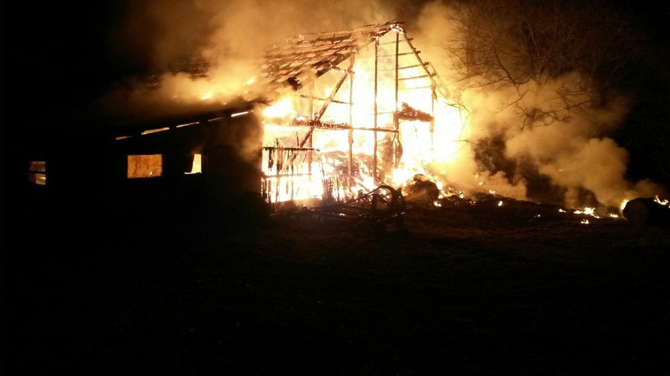 Gegen 22.10 Uhr ging der Notruf bei der Polizei in Simmern und der Integrierten Leitstelle in Bad Kreuznach ein. Beim Eintreffen der Helfer stand die Scheune mit etwa 150 darin gelagerten Heuballen bereits im Vollbrand.