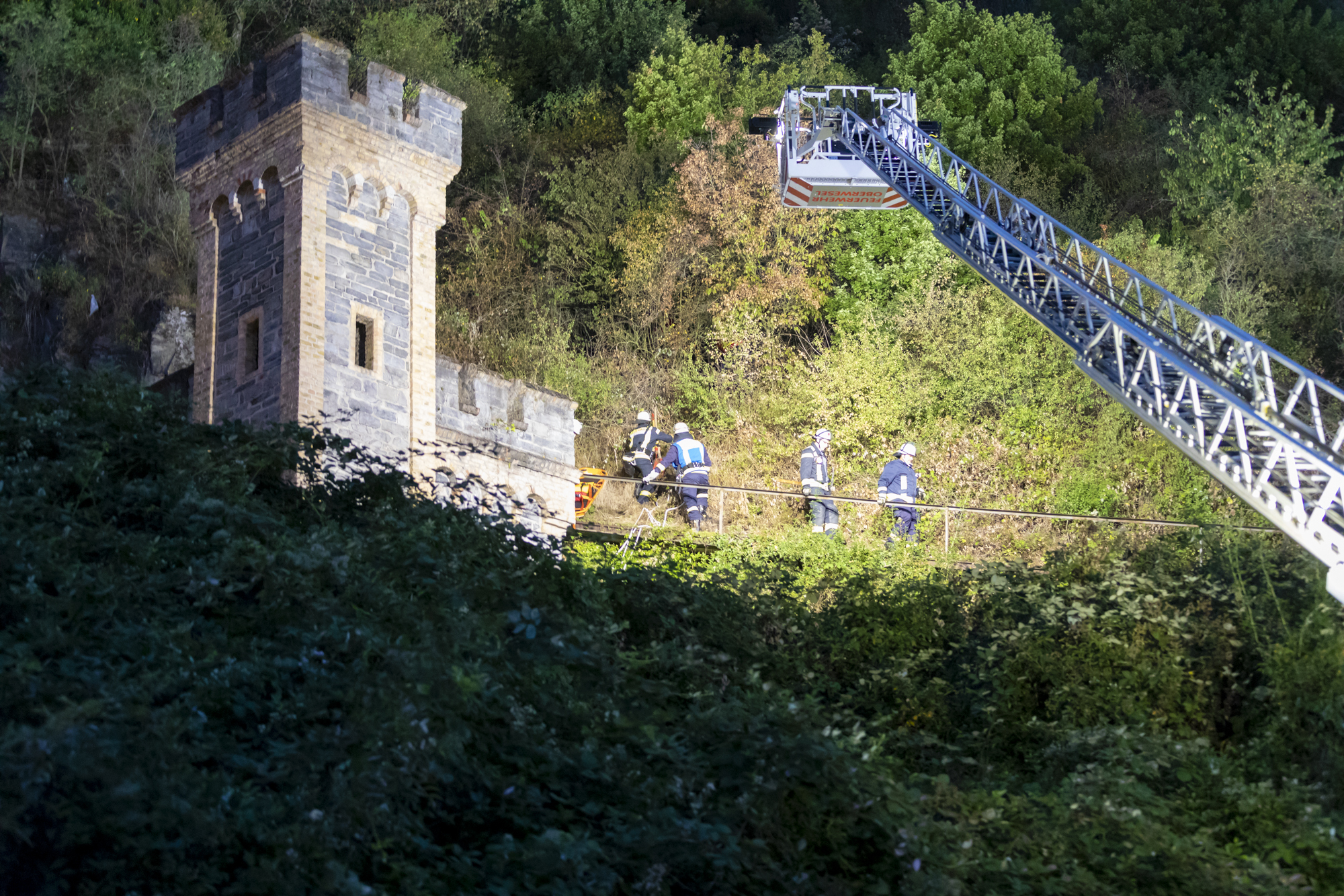 Der Korb schlug dann mehrfach auf dem Acker auf, wodurch vier Personen aus dem Korb geschleudert wurden. Drei wurden schwer verletzt. "Der Ballon wurde dann noch einmal über das Dorf getragen und ist rund 500 Meter weiter Richtung Urbar wieder aufgeschlagen", sagt Kreisfeuerwehrinspekteur Stefan Bohnenberger. Dann wurde der Ballon den Berg hinunter in Richtung Rhein geschleift. Er verfing sich oberhalb des in der Ortslage St. Goar - Loreley befindlichem Tunnelportals im steilen, unwegsamen Hang in den Bäumen. Dort wurden die restlichen drei Insassen aufgefunden und durch die Höhenretter der Stadt Boppard aus Ihrer Lage befreit.Die aufwendige Rettungsaktion, bei der deutlich über hundert Helfer von Feuerwehr, Rettungsdienst, THW, DB-Notfallmanager und Polizei im Einsatz waren, wurde zudem durch aufziehendes Unwetter erschwert. "Der Hang war durch den starken Regen wie eine Rutschbahn", sagt Bohnenberger. Trotzdem habe das Zusammenspiel der Einsatzkräfte sehr gut geklappt. Alle beteiligten Personen wurden mit Hubschraubern oder Rettungswagen in die Krankenhäuser nach Koblenz, Boppard und Mainz verbracht. Der Ballonführer wurde durch den Unfall so schwer verletzt, dass er kurz darauf seinen Verletzungen erlag. Zwei weitere Schwerstverletzte sind zwischenzeitlich außer Lebensgefahr. Während der Rettungsaktion war die B 9 als auch die Bahnstrecke zwischen St. Goar und Oberwesel vollgesperrt. Wie es genau zu dem Unglück kam, wird nun durch das Luftfahrbundesamt und die Polizei ermittelt. Der Ballon wird erst in den nächsten Tagen geborgen werden. Da nicht auszuschließen ist, dass der Ballon (z.B. durch eine Böe) in Bewegung kommen und auf die Bahnlinie rutschen könnte, sichert das THW die Stelle ab. Der Bahnverkehr wurde wieder freigegeben. Der Straßenverkehr auf B 9 ist mit einer Ampelregelung ebenfalls wieder halbseitig befahrbar.