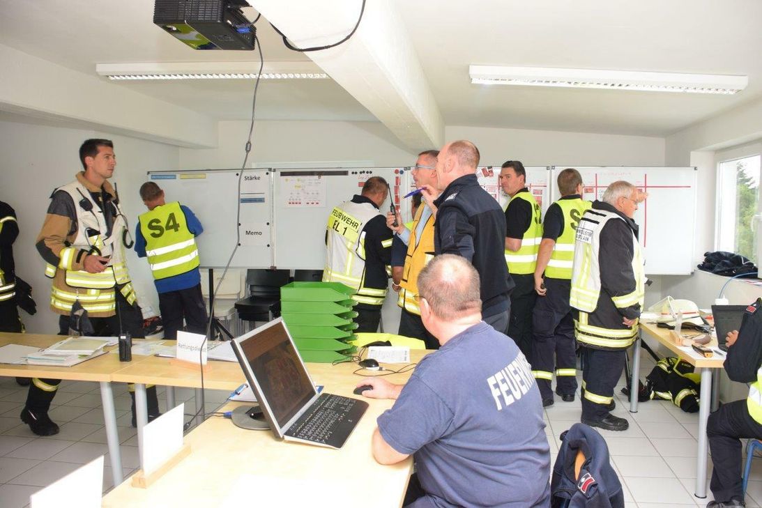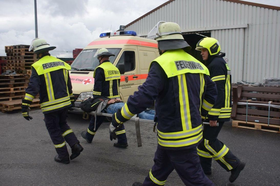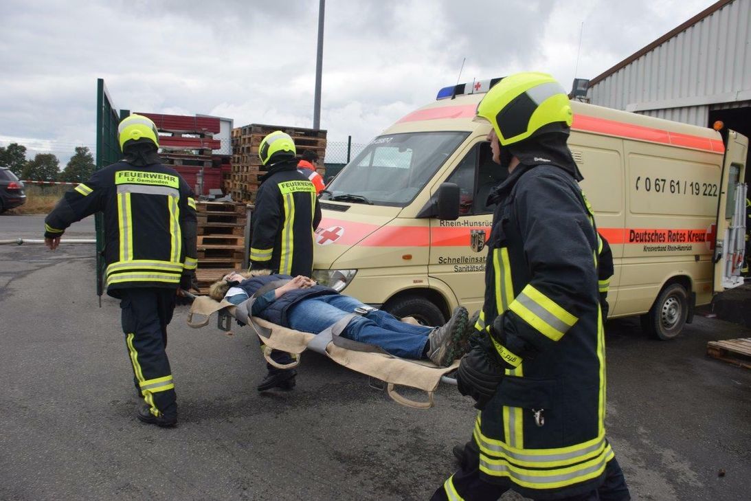 Wrackteile auf dem Betriebsgelände, brennende Lagerhallen, zahlreiche Verletzte. Mit zahlreichen "Darstellern" und "Spezialeffekten" aus der Nebelmaschine probten die Feuerwehren aus der Verbandsgemeinde Kirchberg, DRK, Malteser, Polizei und der Gefahrstoffzug des Rhein-Hunsrück-Kreises in der vergangenen Woche den Ernstfall am Flughafen Hahn. „Im Einsatz waren über 200 Kräfte und Rund 50 Einsatzfahrzeuge“, so Einsatzleiter Oliver Socha, Wehrleiter der Verbandsgemeinde Kirchberg. Auch Bürgermeister Harald Rosenbaum beobachtet das Übungsgeschehen. Nach der Übung gab es Essen und Trinken vom Malteser Hilfsdienst. Bürgermeister Harald Rosenbaum, Wehrleiter Oliver Socha und der stellv. Kreisfeuerwehrinspekteur Christian Albrecht bedankten sich bei allen Beteiligten und sprachen von einer hervorragende Übung. Ganz besonders bedankte man sich bei der Geschäftsführung und Belegschaft der Hahn Kunstoffe GmbH für die freundliche Unterstützung.