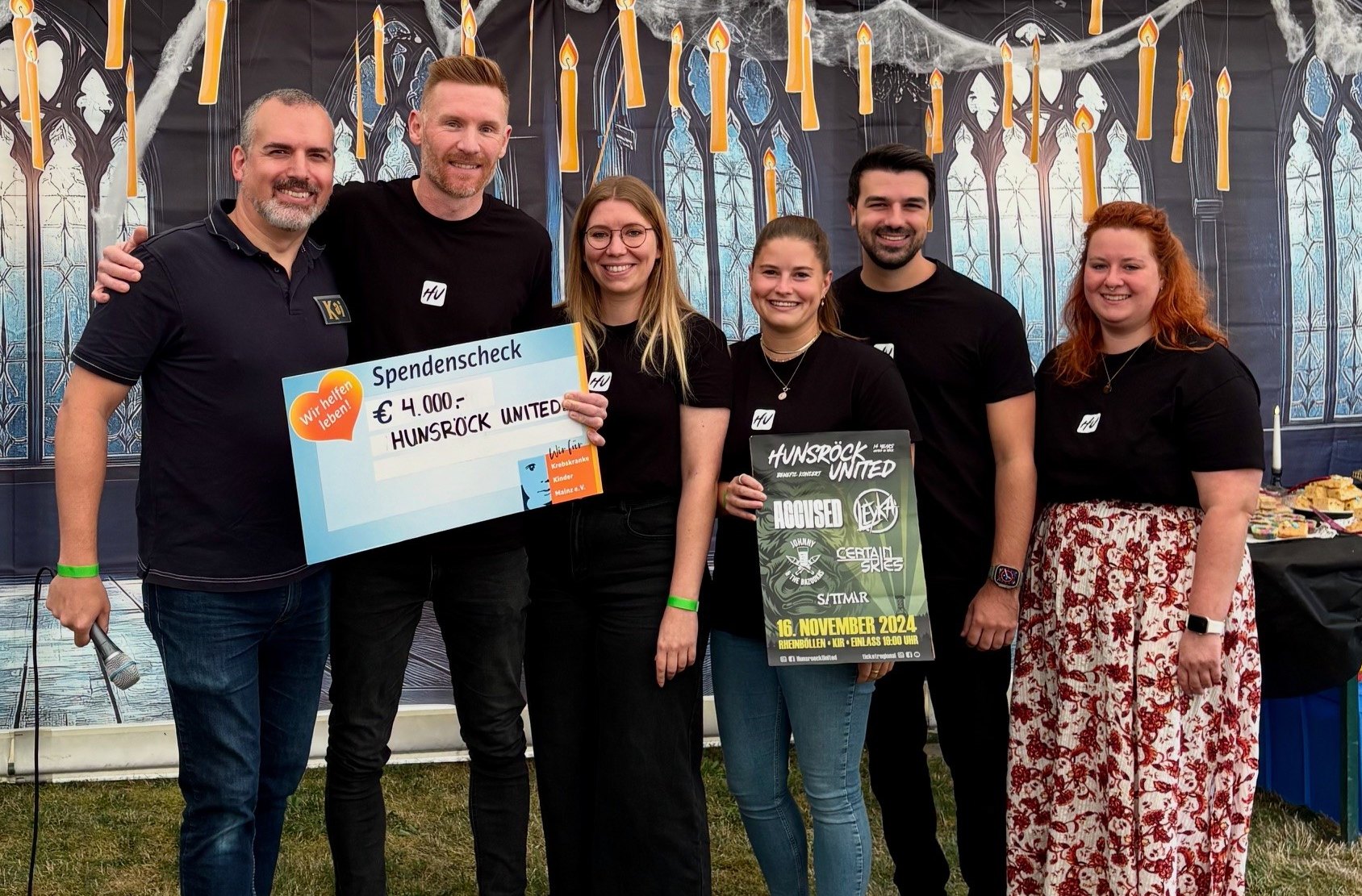 Kai Leimig vom Vorstand nahm die Summe dankbar von der Delegation des Rheinböller Vereins entgegen. Hunsröck United wird einmal im Jahr ehrenamtlich veranstaltet. Am 15. November 2025 findet die 15. Ausgabe statt. Neben dem Benefiz Gedanken ist es dem Verein wichtig die lokale Musikszene zu fördern und eine Plattform für Bands zu erschaffen.