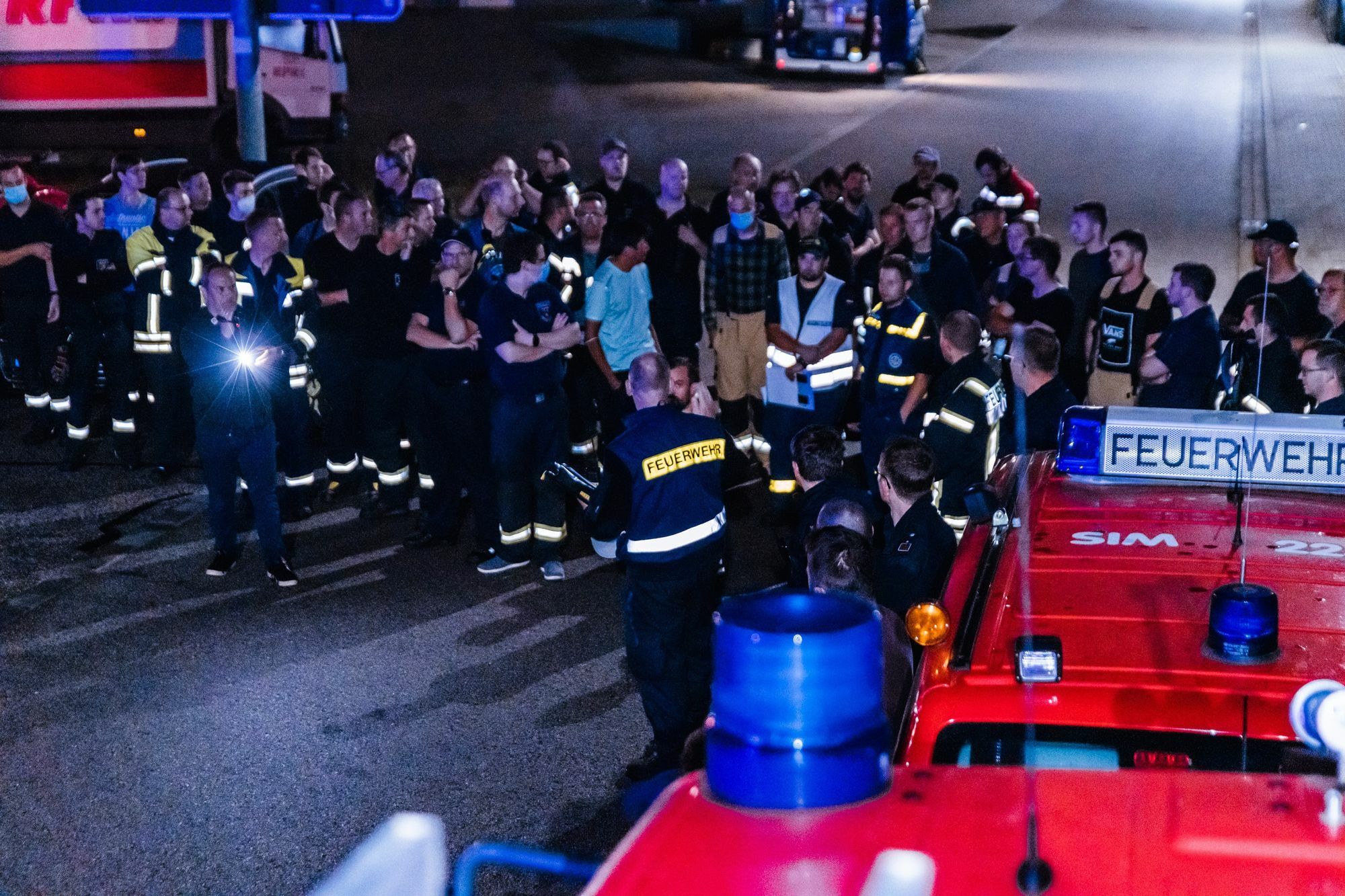 Gegen 22.45 Uhr wurde die Feuerwehrbereitschaft des Kreises zur Bereitstellung nach Dörth alarmiert. Der Einsatz führt die Kräfte in die Vulkaneifel um dort im Katastrophengebiet zu unterstützen. Durch die starken Regenfälle bildeten sich mancherorts (wie im Landkreis Ahrweiler) reißende Ströme. Medienberichten zufolge sind in der Eifel zahlreiche Personen ums Leben gekommen, weitere werden noch vermisst. Der Bereitstellungsraum in Dörth wurde durch den THW Ortsverband Simmern sowie die Freiwillige Feuerwehr Ober Kostenz organisiert und geleitet. Brand- und Katastrophenschutz-Inspekteur (BKI), Stefan Bohnenberger, sowie sein Stellvertreter Christian Albrecht leiten den Einsatz. Nachdem durch das THW und die Feuerwehr der Bereitstellungsraum eingerichtet und organisiert wurde, hielten Bohnenberger und Albrecht eine kurze, erste Einsatzansprache. Im Anschluss, gegen 0.30 Uhr, brachen die Einsatzkräfte in Richtung Vulkaneifel auf. Aktuell sind rund 130 Kräfte mit 28 Fahrzeugen aus dem Rhein-Hunsrück-Kreis im Einsatz.