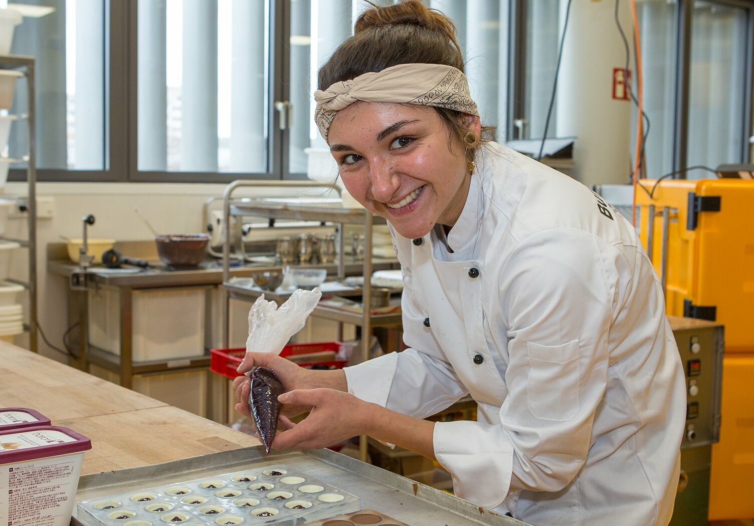 In zehn Arbeitsstunden zauberten neun Teilnehmer aus ganz Deutschland Pralinen, Kleintorten, süße Fours, ein Dekorstück und handmodellierte Figuren zum Thema »Retrospektive.« Die fünfköpfige Jury machte sich dann nach ihrer Begutachtung die Entscheidung nicht leicht und zog sich mehrfach zur Klausur zurück. Sie bewertete nicht nur den Geschmack, sondern auch Optik, Hygiene, Organisation und Dokumentation bei der Produktion der köstlichen Kunstwerke. Am Ende musste sich Savannah Schmitt, die ihre Ausbildung bei Heinrich-Jürgen Dhein in Argenthal absolviert hat, nur Sophie Charlotte Grimmig aus Baden-Württemberg (96,67 Punkte) und Leonard Will aus Nordrhein-Westfalen (98,5 Punkte) geschlagen geben und sicherte sich mit 96,25 Punkten den Bronzerang. »Was sie geleistet haben, ist absolut beeindruckend«, lobte Wirtschaftsministerin Daniela Schmitt bei der Preisverleihung. »In schweren Zeiten brauchen wir gute Momente und dazu trägt das Genusshandwerk bei«, so die Ministerin.