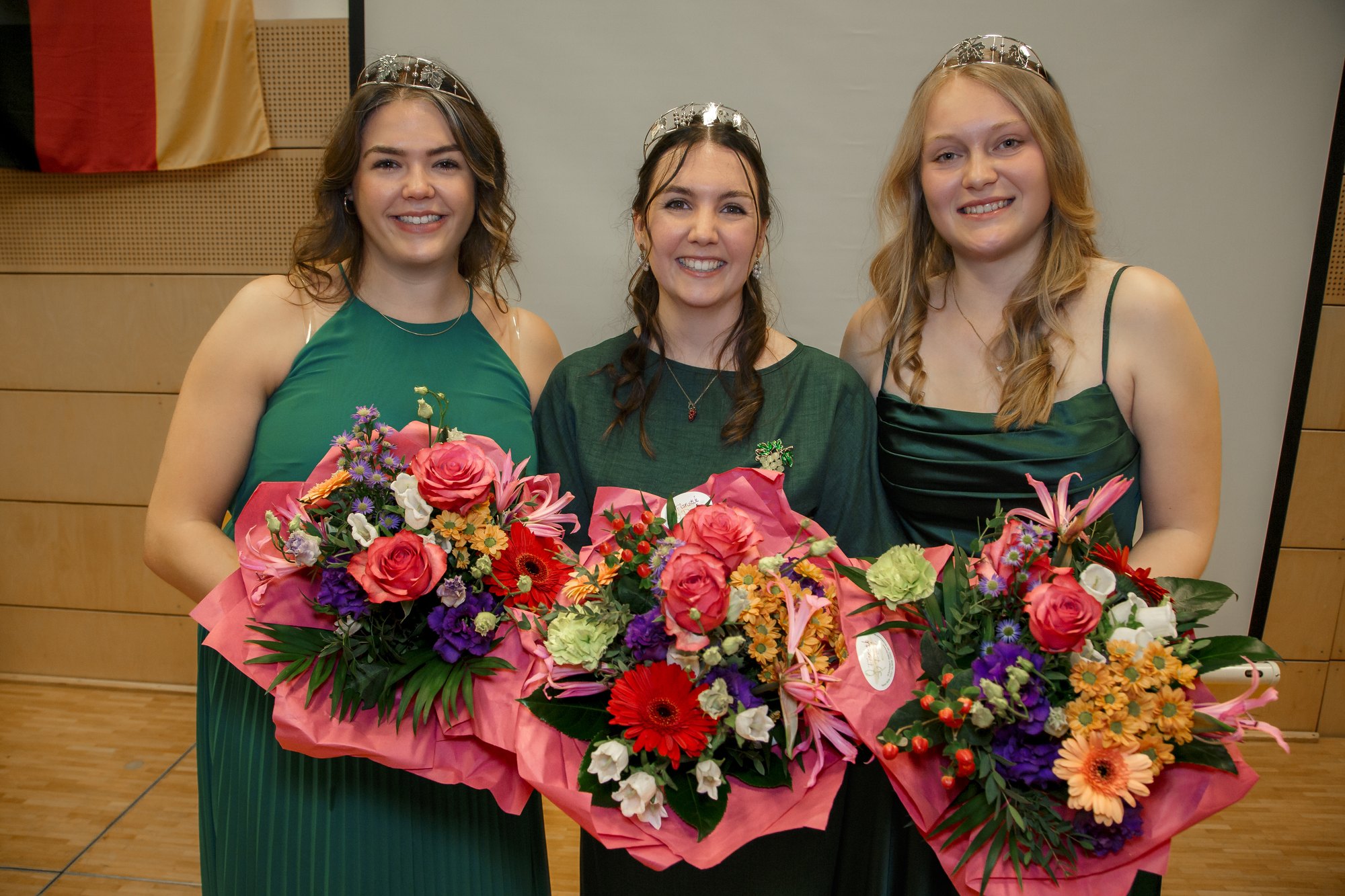Die 26-jährige Jill Rüttgen aus Rheinbrohl ist ehemalige Weinkönigin ihres Heimatsorts und arbeitet als Privatkundenberaterin bei einer Bank. Anna Weinand (20) aus Bad Salzig war bereits Weinprinzessin im vorherigen Team Mittelrhein und hatte sich zum zweiten Mal um die Krone beworben. Sie studiert Marketing International Business in Koblenz. Mittelrhein-Weinkönigin Janina wiederum ist Zahnmedizinische Fachangestellte und hat royale Erfahrung als Ortsweinhoheit in ihrem Heimatort Rhöndorf gesammelt.