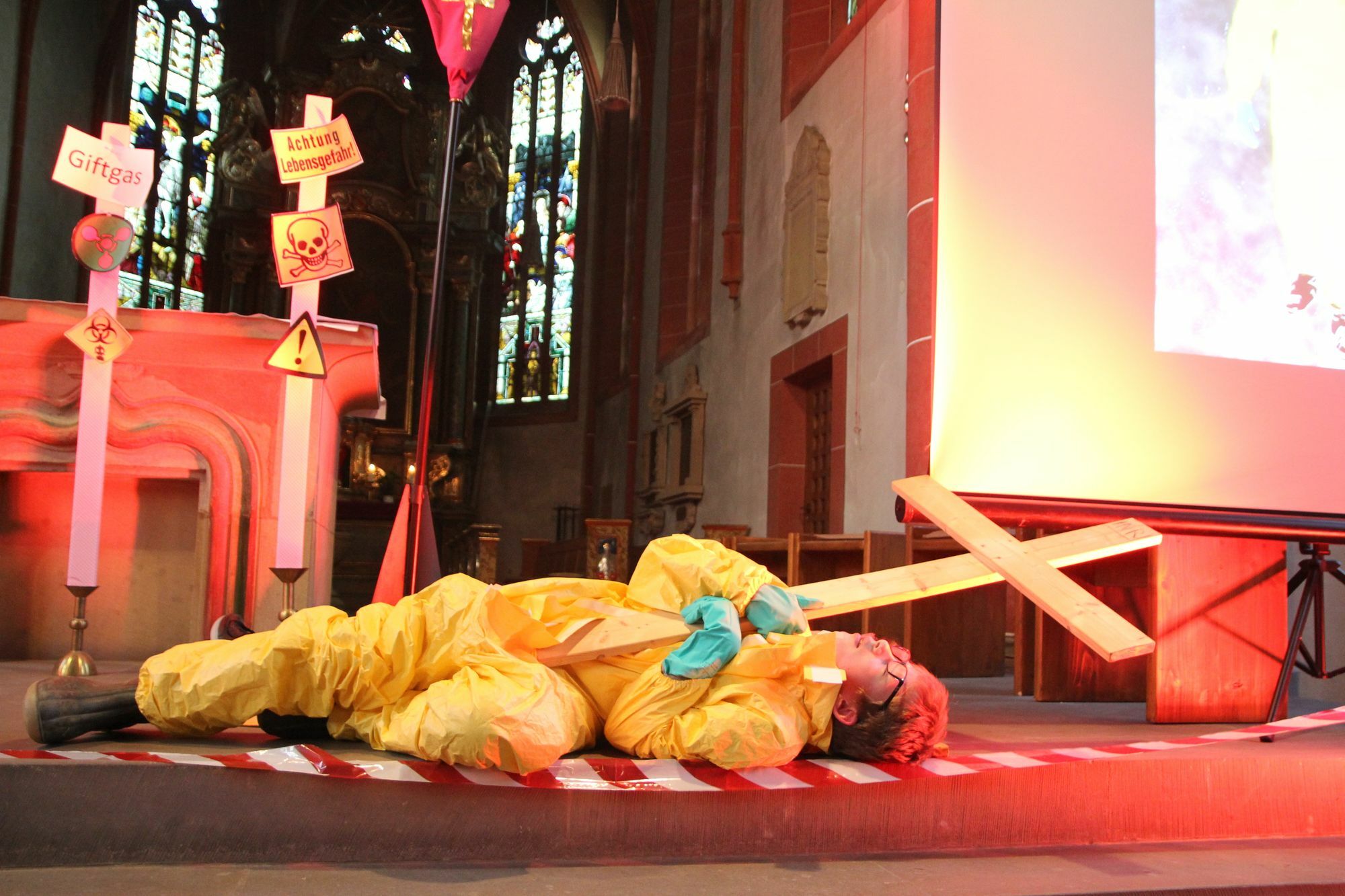 So kurz nach dem Giftgasangriff in Syrien bekommen die Besucher des ökumenischen Jugendkreuzwegs in Simmern eine Ahnung davon, was es bedeuten kann, im Krieg aufzuwachsen. Die Jugendlichen zeigten an dieser Station auf, dass wir dankbar sein können für Menschen, die sich für andere einsetzen. "Der Kreuzweg der Erwachsenen hängt in den Kirchen an der Wand und ist immer präsent. Der Kreuzweg der Jugend entsteht jedes Jahr neu", erklärt Jugendreferentin Susanne Reuter. Die Jugend bezog sich im Kreuzweg auf ihre Lebenswelt, aktuelle politische Ereignisse und das Leben in der Gesellschaft. "Was kann ich von Jesu Art im Umgang mit Menschen lernen?", lautete eine Fragestellung. "Wo schließe ich selbst aus, wo kann ich Grenzen, Zäune und Abstand zu anderen abbauen?" eine andere. Jugendliche verschiedener Gruppen der evangelischen, katholischen und freien evangelischen Gemeinde bereiteten die Stationen vor, musikalisch gestaltet wurde der Kreuzweg von "Changes". Mehr Infos auf: www.crossporttoheaven.com