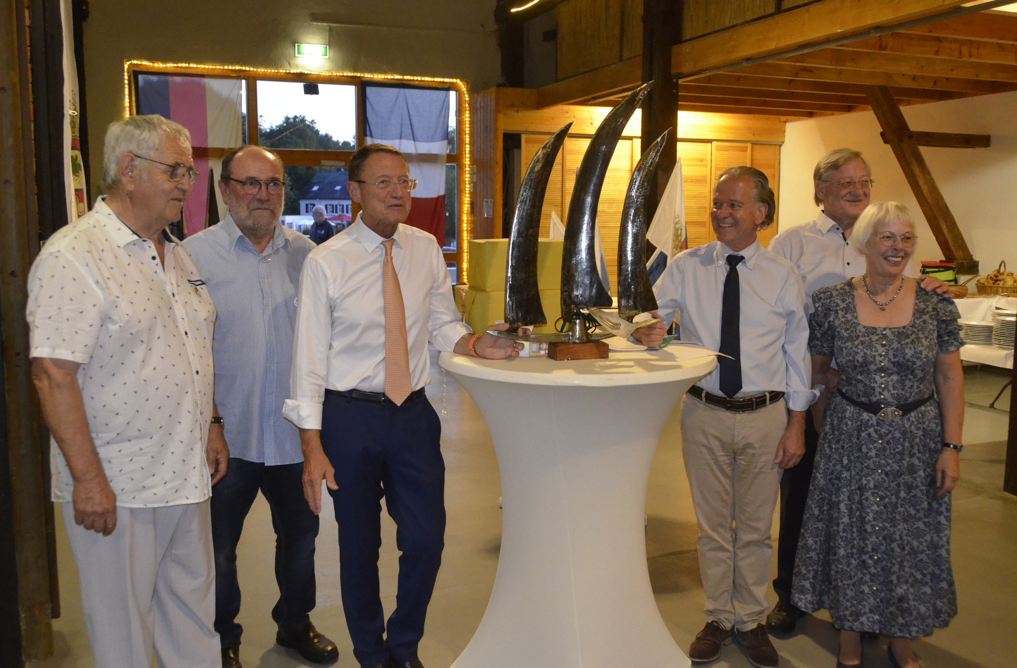 Dieses Mal wurden die Migenner im September in Simmern empfangen. Gefeiert wurde am Freitagabend in der von Haupt- und Ehrenamtlichen geschmückte Simmerner Seescheune. Ohne das Engagement und die Gastfreundschaft der Gastfamilien, wäre eine solche Partnerschaft nicht möglich. Seit 1969 änderte sich die Motivation für diese Partnerschaft und erhielt einen anderen Hintergrund, auch weil sich viele persönliche Bekanntschaften zu festen Freundschaften entwickelt haben. Der ursprüngliche Antrieb aber, die Entwicklung und Festigung des Friedens in Europa, sollte nicht vergessen werden. Gerade diese alten und fast schon selbstverständlichen Gründe treten plötzlich durch die neueren politischen Entwicklungen wieder stärker in das Bewusstsein. Was auch die Bürgermeister der beiden Städte, François Boucher und Dr. Andreas Nikolay, bei ihren Begrüßungen betonten. Wie üblich zeugte die Migenner Delegation mit 50 Gästen und ihrem Anteil an Kindern und die entsprechend große Zahl von Gastfamilien, von dem ungebrochenen Interesse, die Jumelage zu leben und weiter zu entwickeln.
