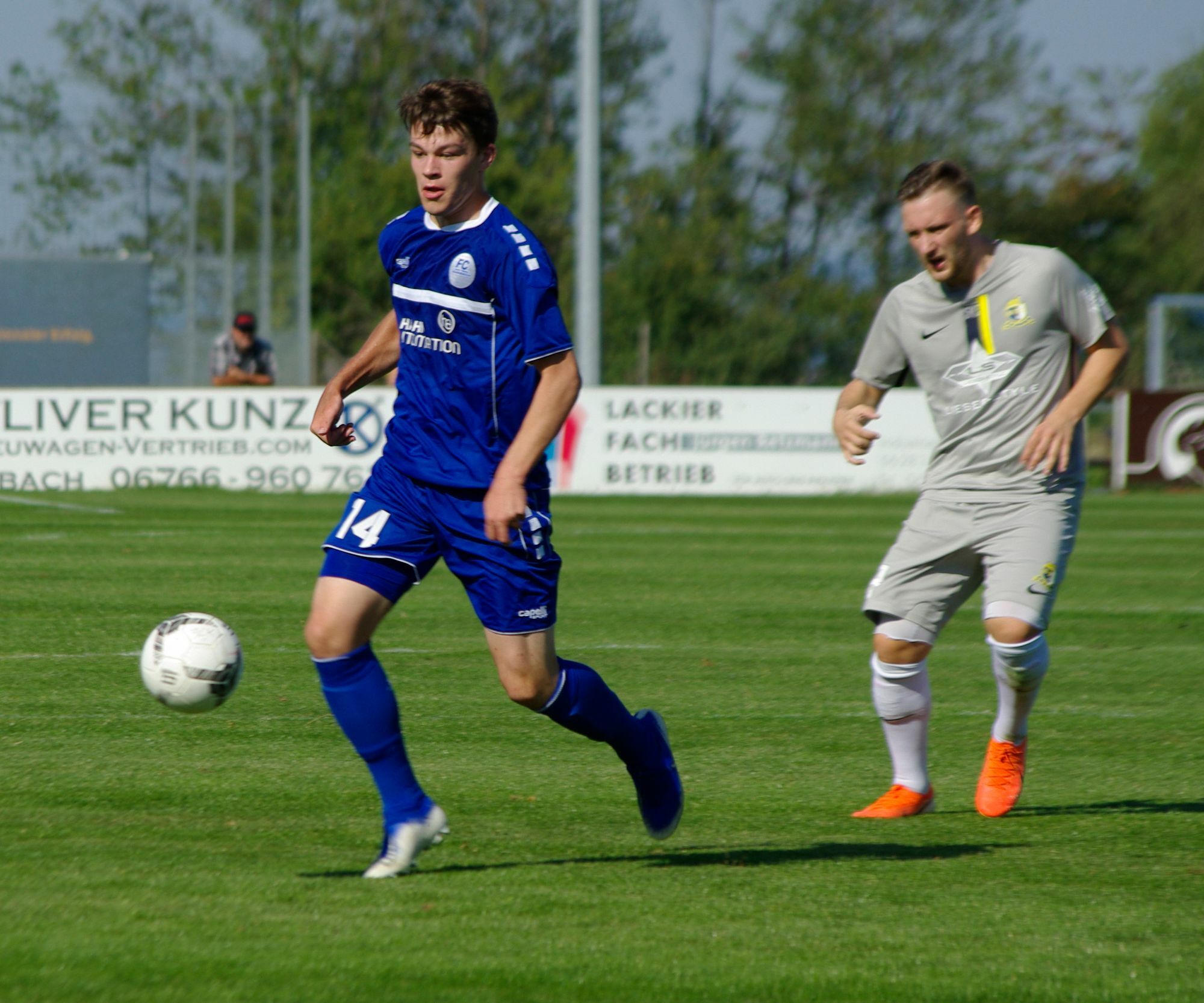 Von Arno Boes. Ihnen gehörten auch die ersten fünf Minuten des Spiels, da starteten sie mit Elan in die Partie. Aber schnell nahm die Blau-Weiße Truppe von Trainer Torsten Schmidt die Herausforderung an, eroberte sich früh die Bälle und kam zu den ersten Chancen. In der 14. Minute wurde Janik Otto mit zwei langen Pässen auf der linken Karbacher Angriffsseite freigespielt. Er drang in den Trierer Strafraum ein, wurde klar gefoult und den fälligen Strafstoß setzte Kapitän Maxi Junk sicher zur 1:0 Führung ins linke untere Toreck. Die Eintracht brauchte einige Minuten, um sich wieder zu sammeln. Angefeuert wurden sie von rund 200 Fans, die sich zwar verbal nicht immer jugendfrei bemerkbar machten, im gesamten Verlauf des Spiels aber den Anweisungen der Trierer Mannschaftsbetreuer folgten und hinter die Platzabsperrung zurückgingen. Zwölf Minuten nach dem Führungstreffer konnten sie dann auch zum ersten Mal jubeln, mit schnellem Passspiel wurde die Karbacher Hintermannschaft ausgehebelt, der Ausgleich zum 1:1 war die Folge. Richtig laut wurden der Trierer Anhang unter den insgesamt 465 Zuschauern in der 37. Minute. Im Kampf um den Ball prallten Otto und der wenige Minuten zuvor eingewechselte Trierer Thayaparan so unglücklich mit den Knien zusammen, dass der Eintracht-Spieler verletzt vom Platz getragen werden musste. Klar, dass damit der Karbacher Nachwuchsspieler fortan zum Buhmann gemacht wurde, aber auch das war bald beendet. Denn in der 43. Minute gelang den Gästen der Führungstreffer zum 1:2. Nach der Pause schiene der SV schon früh den Vorsprung defensiv verwalten zu wollen. Die Karbacher dagegen hielten ihren Druck aufrecht, kamen immer wieder zu guten Einschusschancen, trafen aber letztlich das Tor nicht. Die beste Möglichkeit hatte Tim Puttkammer, dessen Seitfallzieher nach rund 60 Minuten ans Lattenkreuz krachte. Torsten Schmidt setzte wenig später alles auf die Angriffskarte, brachte mit Dominik Kunz, Niklas Schneider und Tim Hulsey alles, was auf der Bank für die Offensive zur Verfügung stand. Aber der Kräfteverschleiß machte sich dann ab der 80. Minute bei den Karbachern doch bemerkbar, mit zwei schnellen Angriffen stellte der SV in der 81. und 86. Minute den 1:4-Endstand her. Die Niederlage gegen der Tabellenvierten war trotz des guten FC-Spiels sicher zu verschmerzen. Viel ärgerlicher war aber die rote Karte in der 88. Minute für André Marx, der in einer Aktion an der Seitenlinie ziemlich hart gegen seinen Gegenspieler einstieg. Damit wird er den Karbachern für mindestens ein, vermutlich aber für mehr Spiele fehlen. Die müssen am Mittwoch (28. August) um 19.30 Uhr in Spay im Rheinland-Pokal gegen die SG Rhens/Spay/Waldesch antreten. Am Sonntag (1. September) wartet dann der SV Elversberg auf seinem Platz auf den FC. Auch hier dürfte es für die von Verletzungen und Sperren bereits nach dem sechsten Spieltag hart gebeutelten Hunsrück ziemlich schwer werden.