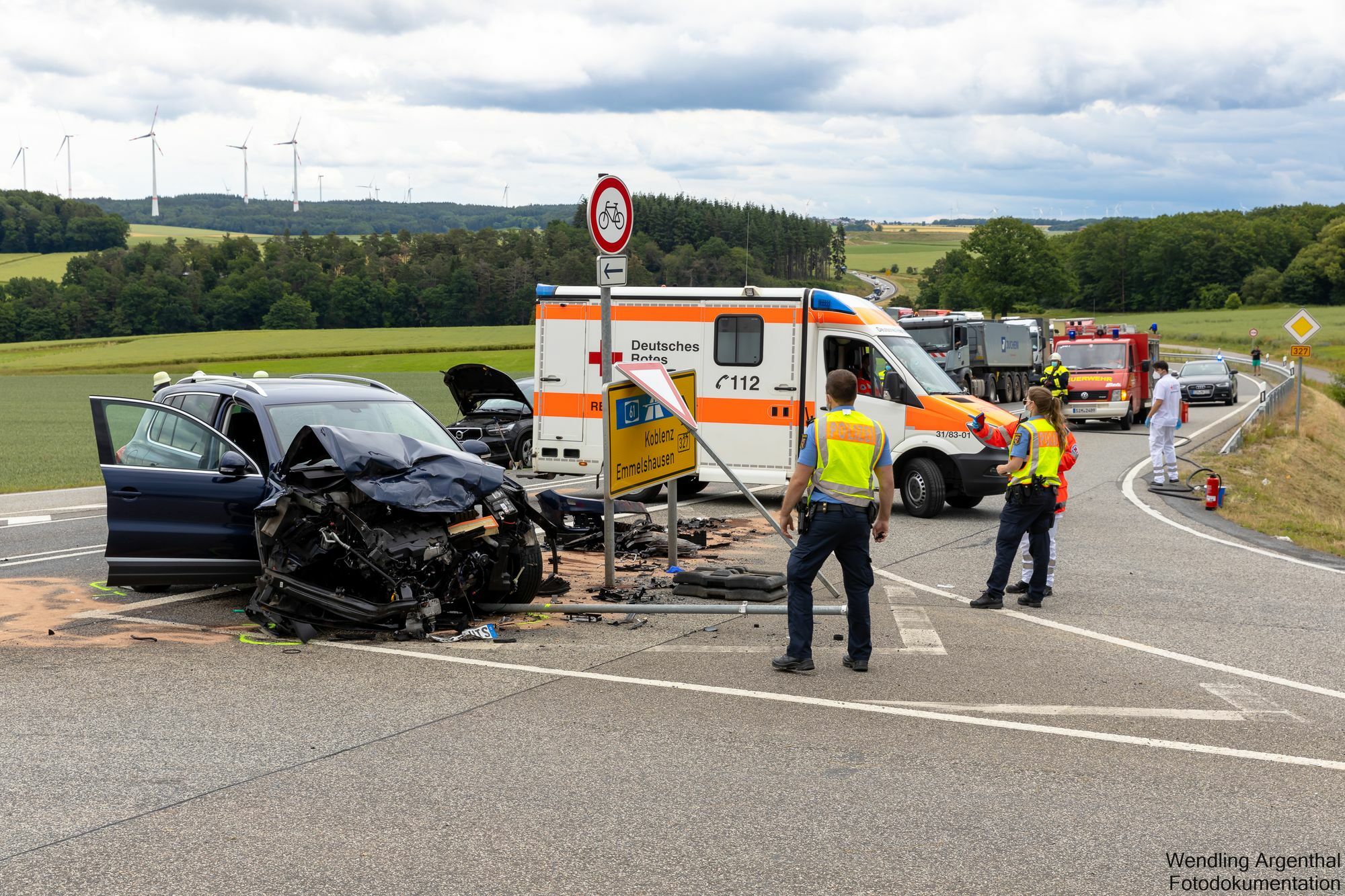 Nach derzeitigem Stand der Ermittlungen beabsichtigte der Fahrer eines VW von der L 205 kommend nach links auf die B 327 in Richtung Kappel abzubiegen. Hierbei übersah er einen von links kommenden Volvo. Bei der Kollision der beiden Fahrzeuge wurden beide Fahrer und die Beifahrerin des VW verletzt und mussten in verschiedene Krankenhäuser eingeliefert werden.