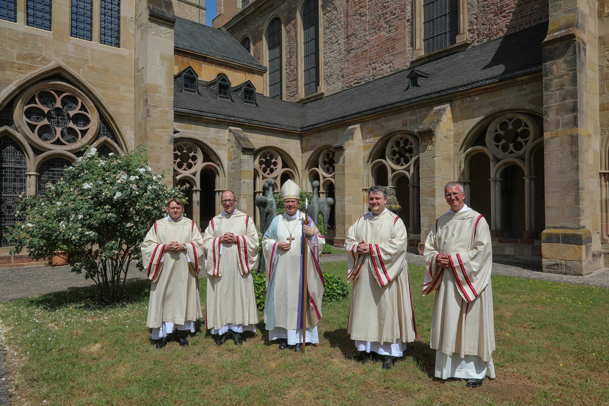 Bei der Weihe legten Braun und Dahlke nach der Anrufung des Heiligen Geistes ihr Gehorsamsversprechen ab; zuvor holte der Bischof das Einverständnis der Ehefrauen ein und bedankte sich für deren Unterstützung. Es folgten Weihelitanei, Handauflegung und Weihegebet. Danach legten die Männer Stola und Dalmatik an (die Gewänder der Diakone im Gottesdienst). Bischof Ackermann überreichte ihnen das Evangeliar als symbolischen Ausdruck dafür, dass im Zentrum ihres Dienstes die Verkündigung der Frohen Botschaft steht. Danach assistierte Dahlke bei der Feier der Eucharistie. Harald Braun (55) stammt aus der der Pfarrei Kreuzauffindung in Kastellaun, ist verheiratet und hat drei Söhne. Er arbeitet an der Hochschule der Polizei Rheinland-Pfalz am Campus Hahn im Bereich der Studienorganisation. Sein künftiger Einsatzort als Diakon mit Zivilberuf wird die Pfarreiengemeinschaft Simmern sein. Christian Dahlke (35) aus der Pfarrei St. Barbara in Saarbrücken ist verheiratet und hat einen Sohn. Im Zivilberuf arbeitet er als Konrektor am Bischöflichen Willi-Graf-Gymnasium in Saarbrücken. In der Pfarreiengemeinschaft Saarbrücken (Altenkessel) wird er künftig als Diakon unterwegs sein. Da das Platzangebot aufgrund der Corona-Hygienevorschriften begrenzt war, wurde der Gottesdienst im Internet übertragen – rund 100 Personen verfolgten den Live-Stream. Die musikalische Gestaltung übernahmen Josef Still an der Hauptorgel und Bernhard Leornardy an der Chororgel sowie das Projektensemble Chorakademie Kastellaun unter der Leitung von Dekanatskantor Volker Klein. https://www.bistum-trier.de/diakonat-im-bistum-trier/staendige-diakone