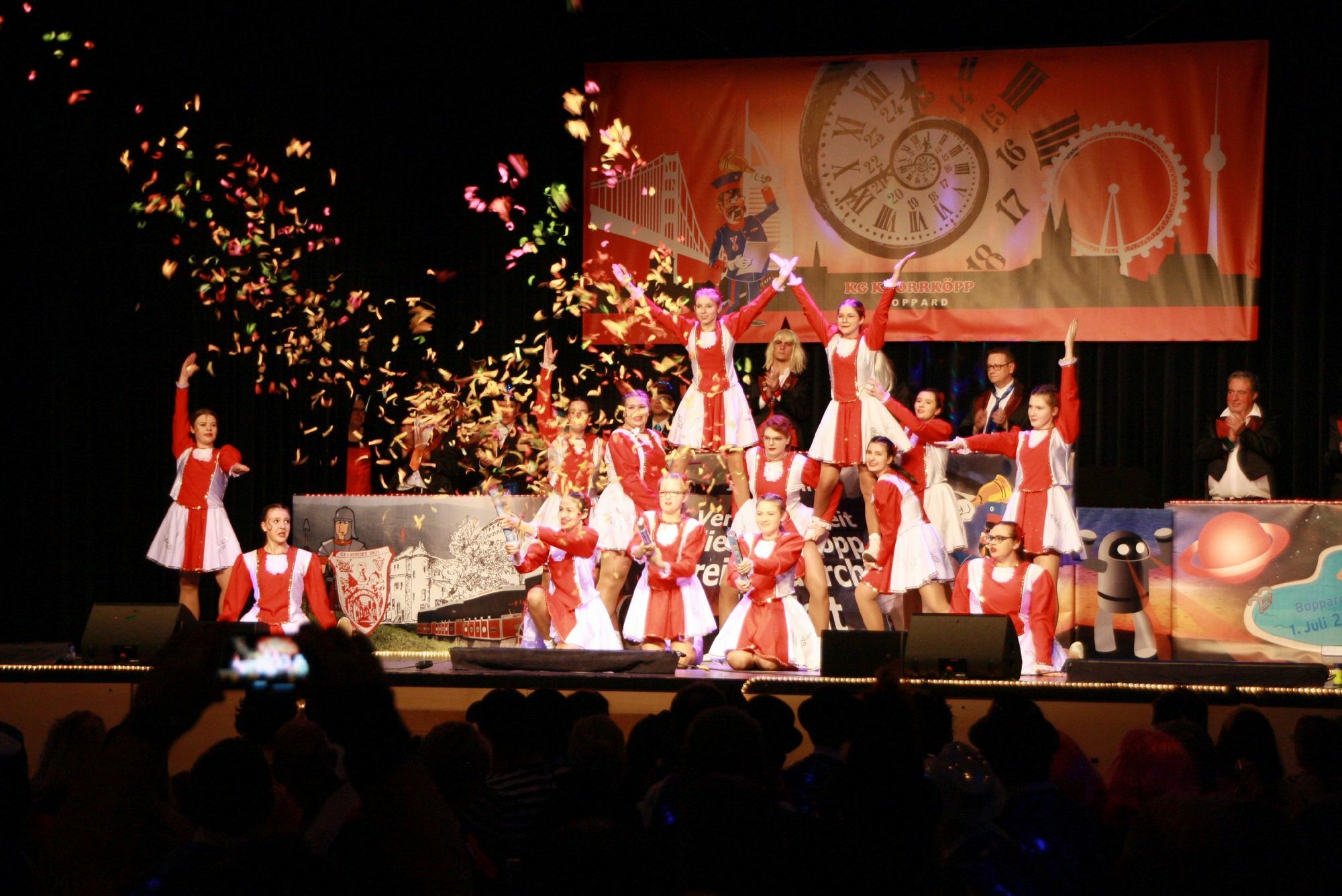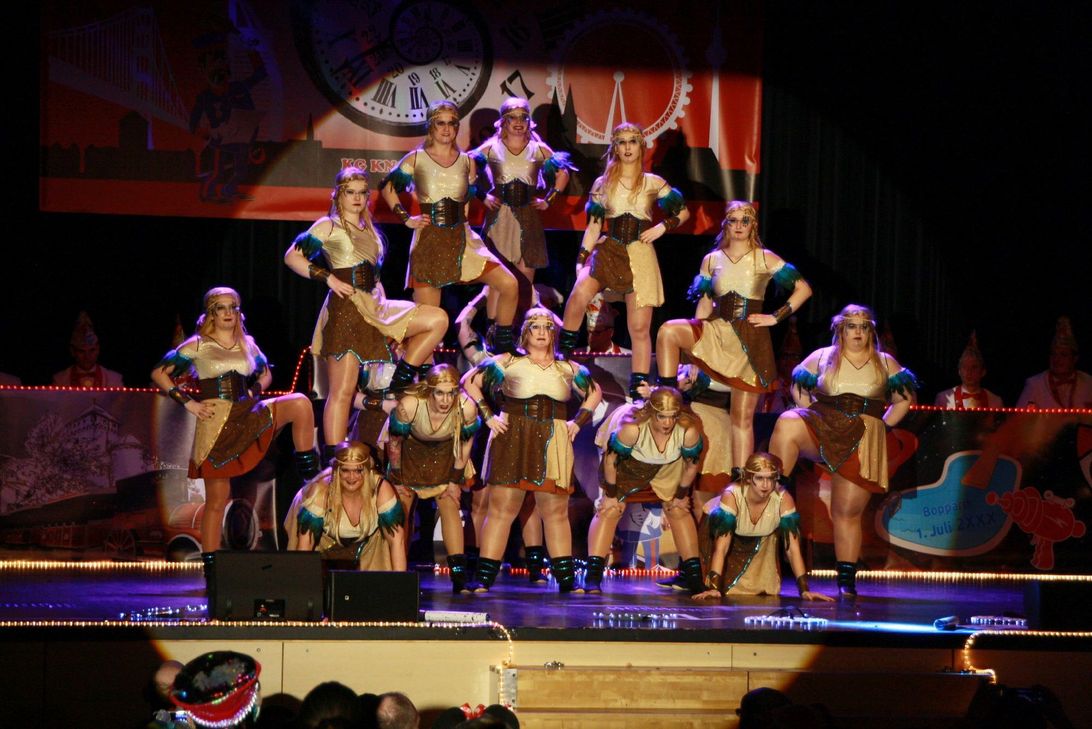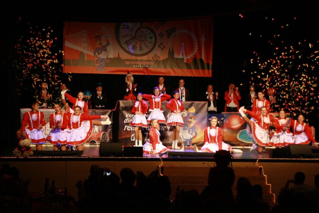 Nach dem traditionellen Sektempfang und Worten des Sitzungspräsidenten Markus Hofmann und 1. Vorsitzenden Marcus Plume betrat der Schellemann die Halle. Michael Günster ist das traditionelle Kostüm wie auf den Leib geschneidert. Dieses Jahr rief er nach langer Zeit wieder zuerst den deutlich verjüngten und größeren Elferrat zu einem Eröffnungstanz auf die Bühne. Trainiert von Corinna Fiedler, Judith Hofmann und Tanja Plume gab es die ersten Flugnummern und einiges an Haut zu sehen. Nach dem folgenden Einmarsch aller Aktiven hieß es "Bühne frei" für die erste Gruppe: Die jüngsten des Vereins, die Schellemänncher bzw. Schellemädcher. Trainiert von Nicole Heuser und Lilien Bengart-Braun. Für viele der Beginn einer längeren Bühnenkarriere, sind in dieser Gruppe die jüngsten des Vereins versammelt und schnuppern erste Bühnenluft. Im Anschluss folgte die Jugendshowtanzgruppe "Häwestillcher", trainiert von Nicole Heuser, Maike Gras und Bianca Galeazzi, die nächste Stufe der tänzerischen Karriere bei den Knorrköpp. Mit einem schönen Tanz als Familie Feuerstein ging es getreu dem Motto zurück in die Frühgeschichte der Menschheit. Mittlerweile beeindruckende 18 Kinder sind ein Beleg für erstklassige Jugendarbeit. Es folgte der Protokoller Jenni Hachmer mit vielen spitzen Seitenhieben auf aktuelles politisches und gesellschaftliches Geschehen. Nach bester Karnevalsmanier natürlich komplett gereimt und seit einigen Jahren schon mit einem Stammplatz auf der Bühne. Danach die Jugendgarde mit einem atemberaubenden Tanz, trainiert von Cindy Stöhr und Lena Fiedler. Nach den Schellemänncher und Häwestillcher der Sprung in den traditionellen Gardetanz mit bereits grundsätzlichen Gardeschritten. Man sah den Mädchen die Begeisterung über den Tanz und neue Kostüme (genäht von Nadja Hachmer) förmlich an. Elias Werner brachte wie im Vorjahr mit einem Wortbeitrag das Publikum zum Lachen. Mit seinem freien Vortrag über den alltäglichen Wahnsinn hat er bereits letztes Jahr die Herzen des Publikums erobert. Man sieht ihm seine lange Erfahrung durch die Kinder- und Jugendsitzung an. Anschließend ließ das Solomariechen Luna Mono (trainiert von Ariane Mall) mit ihrer Akrobatik die Herzen der Zuschauer höher schlagen. Kommunalpolitisch erfolgreich hat sie gerade mit Bestnoten das Abitur abgeschlossen. Dazu noch Solomariechen bei dem traditionsreichsten Karnevalsverein der Region. Soviel Engagement unter einen Hut zu bekommen ist aller Ehren wert. Im späteren Verlauf zeigte sie noch einen Solo Showtanz, der mit tosendem Applaus quittiert wurde. Rudolf Neiser griff das Motto der Kampagne wieder auf und gab einige seiner satirischen Schätze aus seiner Zeit als Stadtschreiber zum Besten. Da hat sich auch über seine vielen Jahre in der Bütt der Bälzer Knorrköpp so mancher Knüller gefunden. Nun wurde es wieder laut in der Halle. Das Prinzenpaar der Karnevalsgesellschaft Niederkirchspiel Oppenhausen mit Prinz und Prinzessin zog samt Gefolge ein und konnten bestaunt werden. Gemeinsam fand das reizende Prinzenpaar schöne Worte für die gemeinsame Session. Dann zwei altbekannte Schwergewichter auf der Bühne. Jürgen Engels und Olli Schrölkamp. Letztes Jahr als "die Zwei vom Kino", dieses Jahr als "Der Greis und die Grazie". Vor Allem letztgenannter Part des Zwiegesprächs dürfte bei den Zuschauern einen bleibenden Eindruck hinterlassen haben. Einfach köstlich. Knorrköpps Große Garde bildete traditionell den Abschluss für die erste Halbzeit. Eine beeindruckende Truppe, von Nina Premka trainiert. Diese tanzt selber bereits seit vielen Jahren in der Garde. Auch deren traditionelle rot/weißen Gardekostüme sind funkelnagelneu und unterstreichen die Aufbruchstimmung im Verein. Nach der Pause peitschte Mega Brass, die Überraschung der letzten Session, die Zuschauer von den Sitzen. Eine junge Blasmusikband mit fantastischen Interpretationen von aktuellen Hits ließ die Narrhalla erbeben. Da ging jeder mit und nach dem grandiosen Empfang letztes Jahr haben sich die Jungs einen festen Platz in den Herzen der Zuschauer erobert. Fred Werner, nach dem Bühnenruhestand von Michael Günster (Pitter und Karl) nunmehr solo unterwegs, hatte mit einem Gesangsbeitrag über Bopparder Themen ein besonderes Bonbon parat. Mit umgedichteten Gassenhauern riss er die Zuschauer mit. Dann das Männerballett. Trainiert von Ramona Schmidl war diese Gruppe wegen einiger artistischer Einlagen während des Trainings etwas verletzungsgeplagt. Aber es war den Jungs nicht anzusehen und das Publikum erlebte über Mini-Playback-Show und Barbie eine musikalische Zeitreise durch die Jahrzehnte. Bei den Knorrköpp gibt es handgemachte "Fassenacht made in Boppard". Zum 119. Geburtstag des Vereins (24. Februar) allerdings sogar "Fassenacht made in Boppard PLUS". Als Gast auf Knorrköpps Bühne willkommen: Ingrid Escher von den Wiebelsheimer Schoppenstechern, einem befreundeten Verein der Knorrköpp. Bei Ihrem herrlichen Wort- und Gesangsbeitrag über den Alltag einer Mutter, garniert mit Gesangseinlagen aus Musikhits hörten die Zuschauer kaum mehr auf, zu lachen und zu singen. Zwei weitere Gäste der Knorrköpp, Willli und Ernst, folgten direkt im Anschluss. Das fernseherprobte Duo brachte die Narrhalla zum Toben. Angesichts des nahenden Geburtstags des Vereins ließen sich die beiden natürlich nicht lange bitten und sie brannten ein humoristisches Feuerwerk ab. Den Abschluss bildete das Showballett, zu Recht Höhepunkt der Sitzung. Als Wickingerbräute zeigten Sie dem Publikum, wer in Knorrköpps Stuben die Hosen anhat. Von Ilka Krüger und Nadja Hachmer trainiert, brachte diese Gruppe wieder eine tolle Choreografie auf die Bühne. Für die Weinproben-Sitzung am 1. Februar sind bei der Mittelrhein Polsterei Michael Kreuz, Steinstraße 20, Boppard und natürlich an der Abendkasse gegebenenfalls noch Karten erhältlich. Diese Sitzung wird das komplette Programm aus diesem Bericht enthalten aber im Rahmen einer 