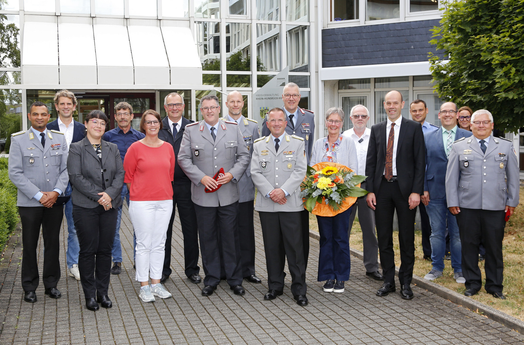 In einer feierlichen Zeremonie im Kreishaus hat Landrat Volker Boch den Leiter des Kreisverbindungskommandos der Bundeswehr für die Zivilmilitärische Zusammenarbeit, Herrn Oberstleutnant a.D. Kristian Baptist Schaum, verabschiedet und dessen Verdienste für die Gesellschaft im Rhein-Hunsrück-Kreis gewürdigt. "Oberstleutnant a.D. Schaum hat sich auf außerordentliche Weise für unsere Region mit eingebracht, dafür gebührt ihm und seiner Frau großer Dank", erklärte Landrat Boch. Der Kommandeur des Landeskommandos Rheinland-Pfalz, Oberst Stefan Weber, würdigte zudem die umfangreichen Verdienste in Schaums militärischem Lebenslauf.