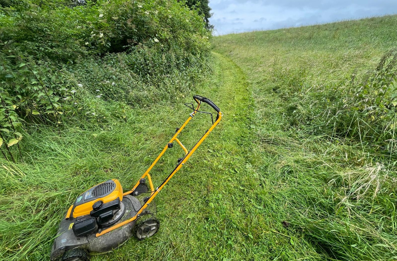 In diesem Jahr gibt es einige Zusatzherausforderungen. Da wäre zuerst das Wetter zu nennen: Viel Regen bedeutet viel Wachstum. Während die Drei sich in den vergangenen Jahren ab Juli um die Reparaturen kümmern konnten, sind jetzt immer noch Freischneider und Mulcher ihre Hauptwerkzeuge. Wenn man hinten fertig ist, kann man vorne wieder anfangen. Deshalb muss man auch ein bisschen um Verständnis bitten, wenn nicht alles perfekt ist. Aber dieses Verständnis scheinen die Wanderer auch zu haben, denn Beschwerden gibt es nur sehr wenige.