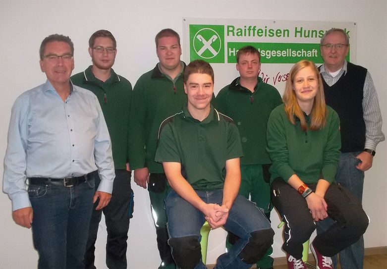 Die beiden Geschäftsführer der Raiffeisen Hunsrück Handelsgesellschaft mbH, Alfred Muders und Peter Assmann, sind stolz auf ihre jungen Mitarbeiter, denen sie zu erfolgreichen Prüfungsabschlüssen gratulieren. Im letzten Sommer haben ihre Ausbildungsprüfungen bestanden und wurden ins Angestelltenverhältnis übernommen: Tessa Reifenschneider (Einzelhandelskauffrau im Raiffeisen-Markt Emmelshausen), Jonas Diener ist Groß- und Außenhandelskaufmann und Tristan Rapp Fachlagerist (beide am Standort Weinsheim/Nahe). Dominik Melis hat seine Weiterbildung zum Handelsfachwirt mit Erfolg abgeschlossen. Er ist am Unternehmenssitz in Lingerhahn überwiegend Ansprechpartner für die landwirtschaftlichen Kunden. In diesem Frühjahr haben sich Frau Reifenschneider und Thomas Winkler als Raiffeisen-Fachverkäufer qualifiziert. Aus- und Weiterbildung wird nach wie vor bei Raiffeisen Hunsrück groß geschrieben. Fünf junge Menschen sind zur Zeit in Ausbildung zu Kaufleuten im Einzelhandel bzw. Groß- und Außenhandel sowie zur Fachkraft für Lagerlogistik. Ab Sommer ist eine weitere Auszubildende bei uns mit dem Zielberuf Informatikkauffrau.