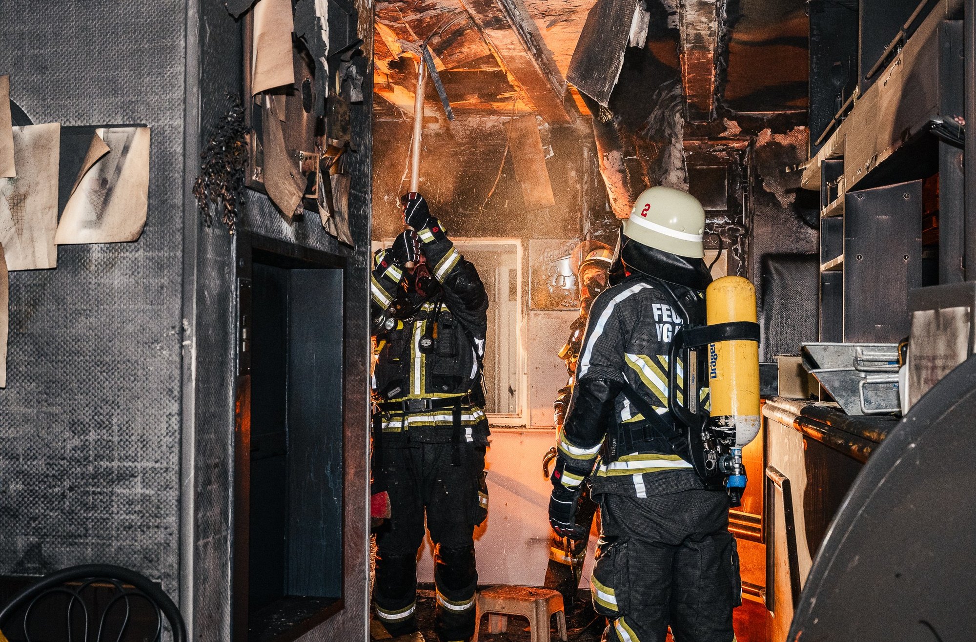 Brennendes Material wurde aus dem betroffenen Raum ins Freie gebracht. Aufgrund der engen Bebauung in der Innenstadt wurden vorsorglich angrenzende Gebäude evakuiert und anschließend belüftet. Im weiteren Verlauf kontrollierten die Einsatzkräfte das Gebäudeinnere mit Wärmebildkameras. Dafür mussten auch Gebäudeteile geöffnet werden, um mögliche Glutnester auszuschließen.