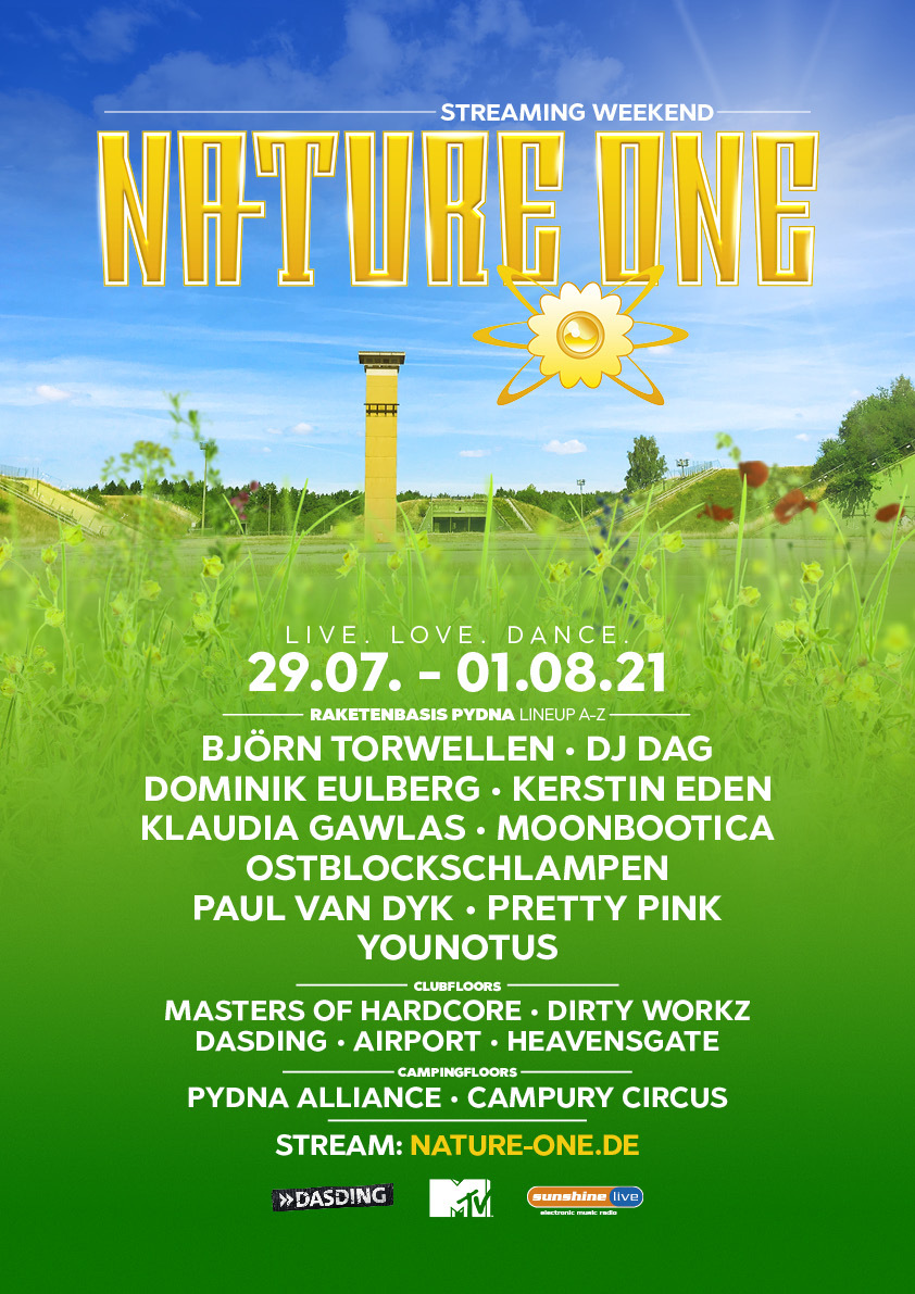 „Nichts kann ein Festival als Live-Erlebnis ersetzen. Aber NATURE ONE ist für viele Menschen die beste Zeit des Jahres. Daher möchten wir den Fans nach dem Erfolg des Streams im vergangenen Jahr (4,5 Mio. Zuschauer) zumindest wieder gute Musik und etwas NatureOne-Atmosphäre nach Hause liefern“, erklärt Geschäftsführer Oliver Vordemvenne. Über 20 Stunden elektronische Musik werden beim NATURE ONE Streaming-Weekend vom 29. September bis 1. August auf YouTube, Twitch und Facebook übertragen.