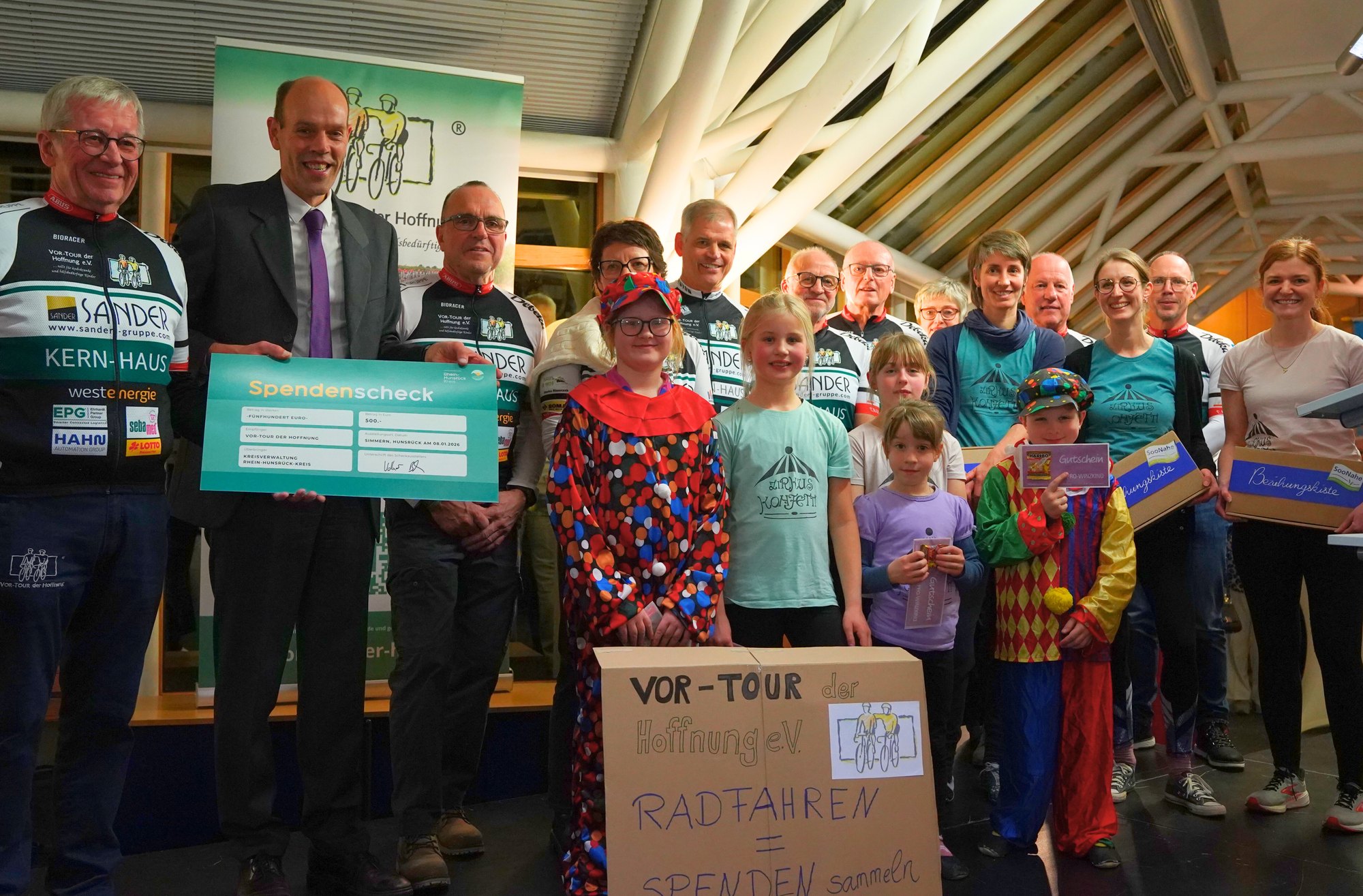 Ein besonderer Programmpunkt des Abends war die Übergabe eines Spendenschecks an Herrn Hans-Josef Bracht, den 2. Vorsitzenden des Vereins Vor-Tour der Hoffnung, die sich für hilfsbedürftige Kinder einsetzen. Mit der Spende soll die wichtige Arbeit des Vereins unterstützt und nachhaltig gestärkt werden. „Ich hoffe, dass auf diesen ersten Spendenscheck des Jahres in der Region noch viele weitere folgen, denn die Vor-Tour der Hoffnung macht im Sommer ja auch einen Stopp in Boppard“, sagte der Landrat.
